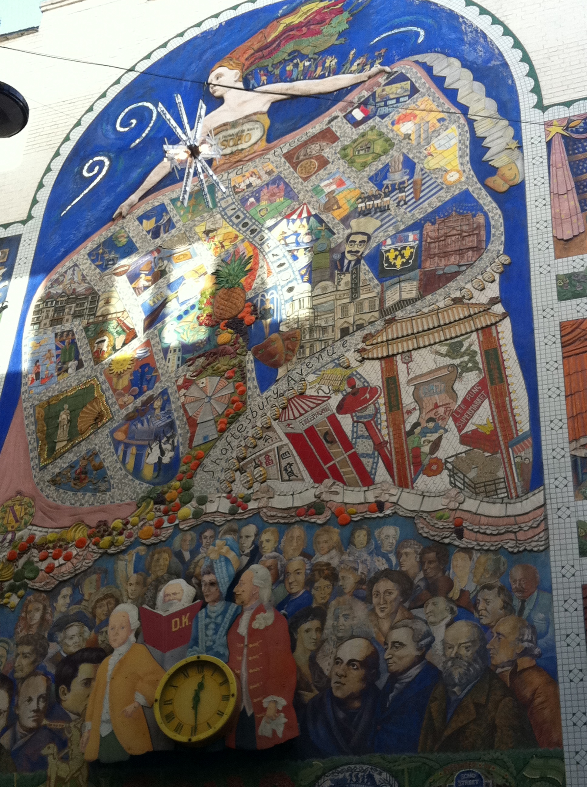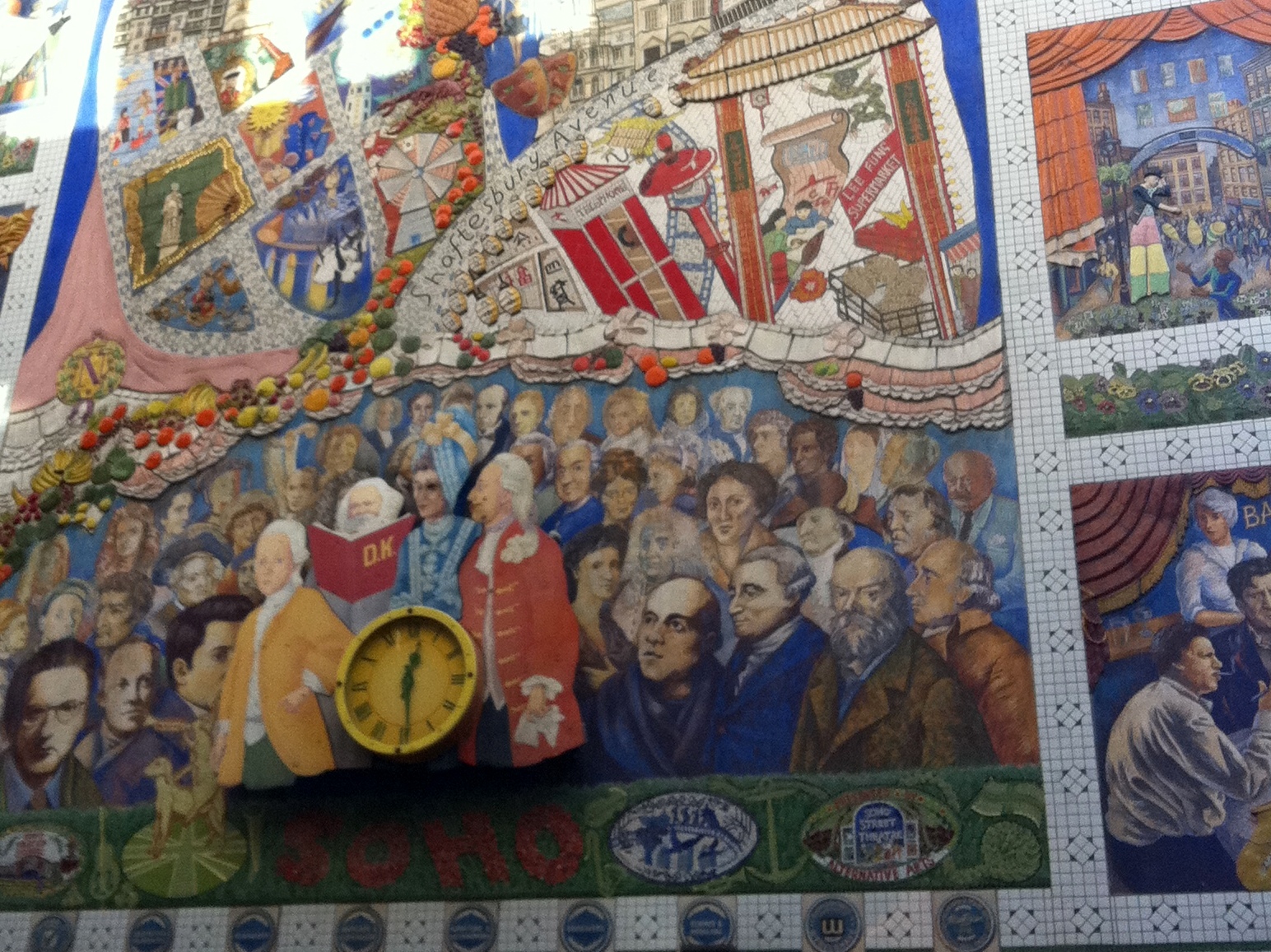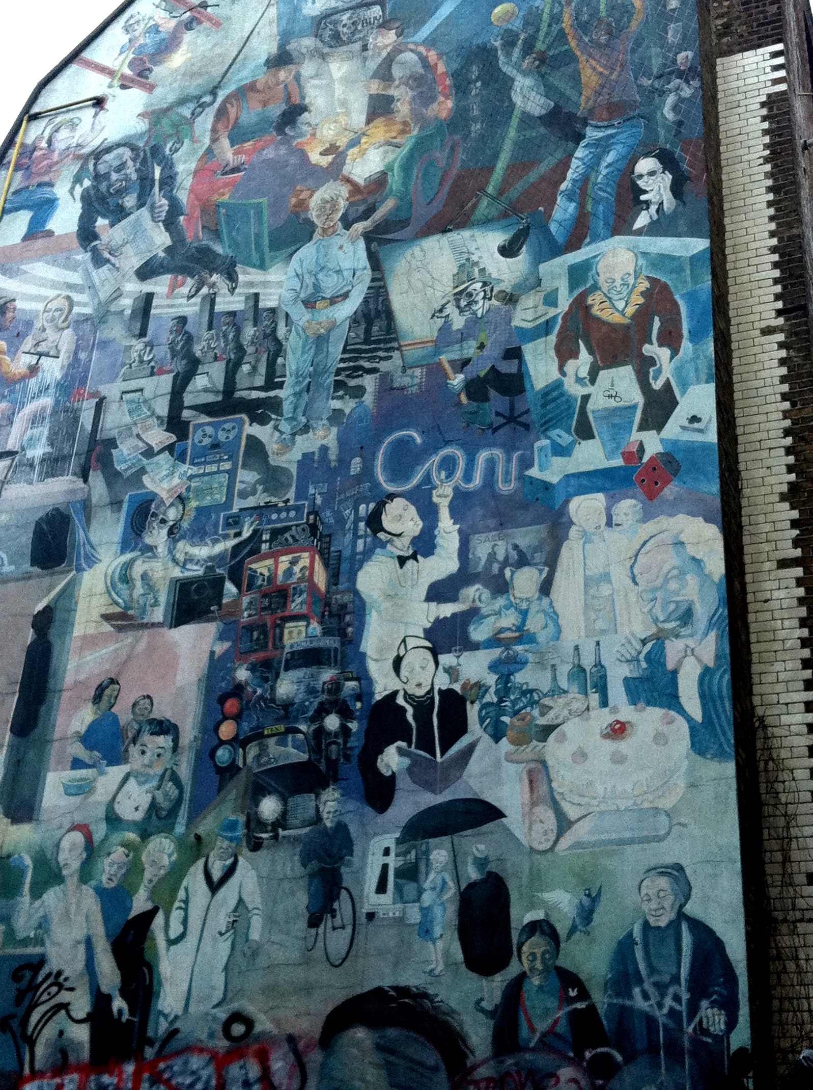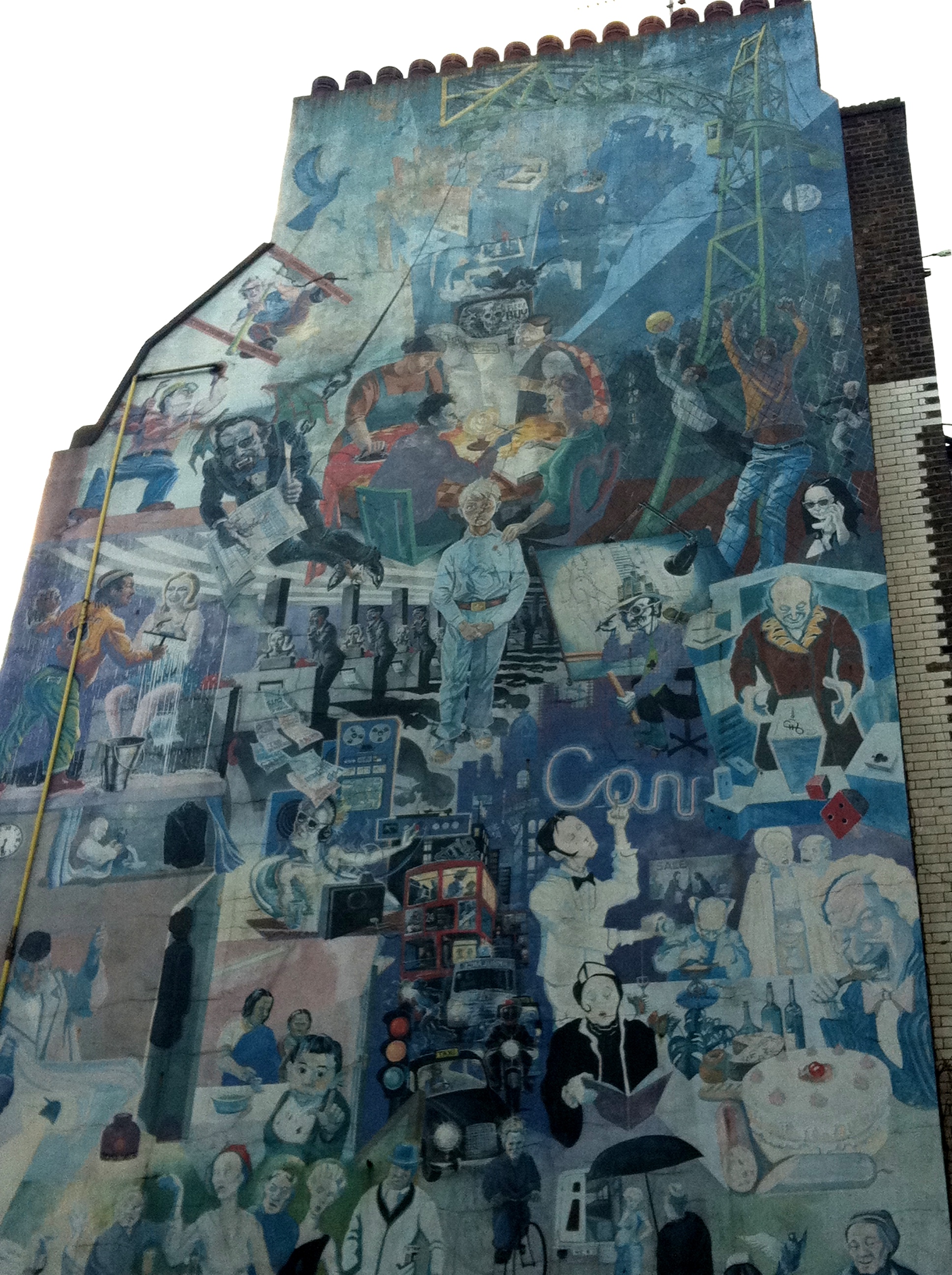The mural below is set back from the street on the west side of Tottenham Court Road: