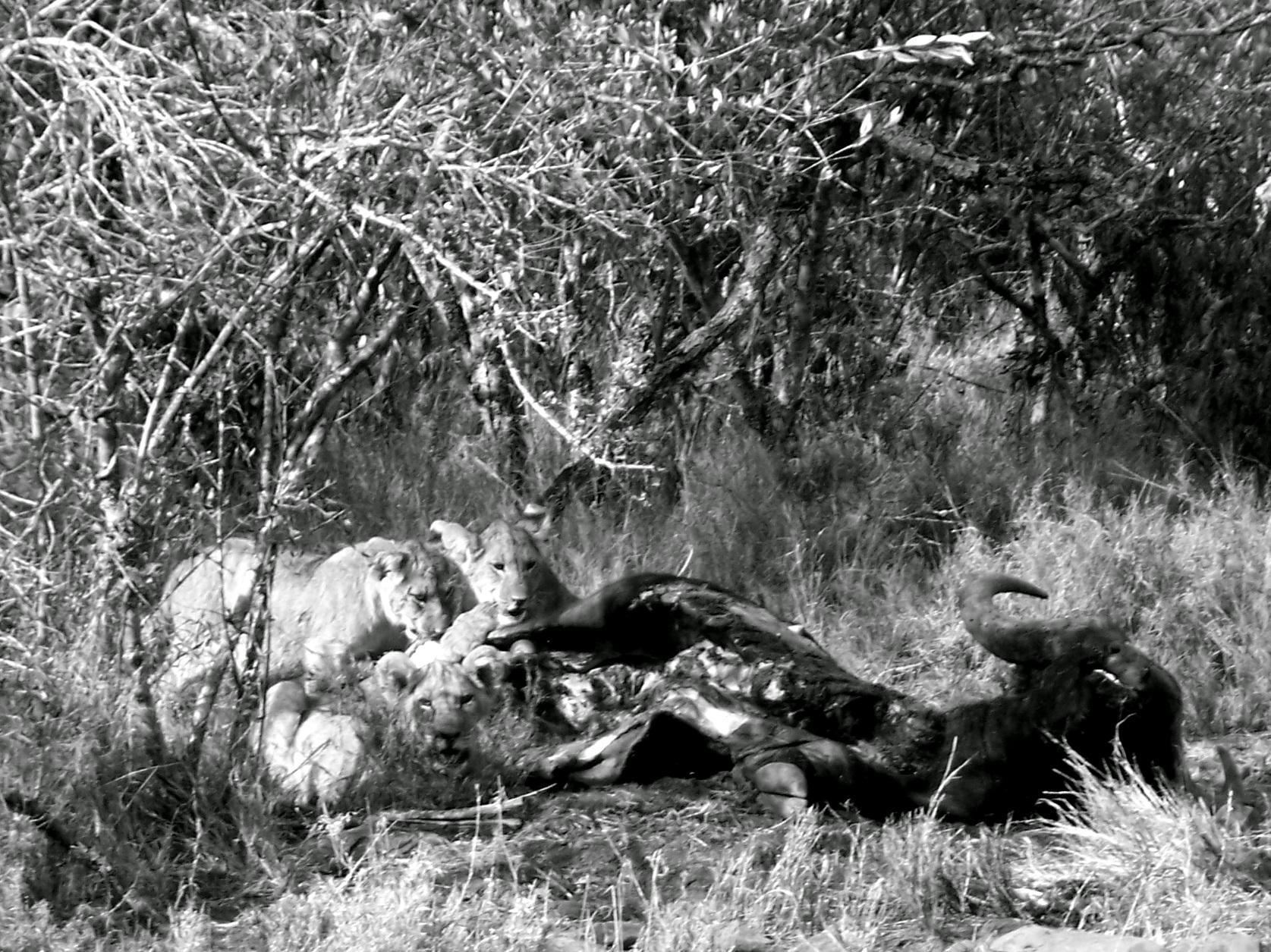 On a game drive in Kenya a year or so a go, we were lucky enough to come across a family of lions having lunch!