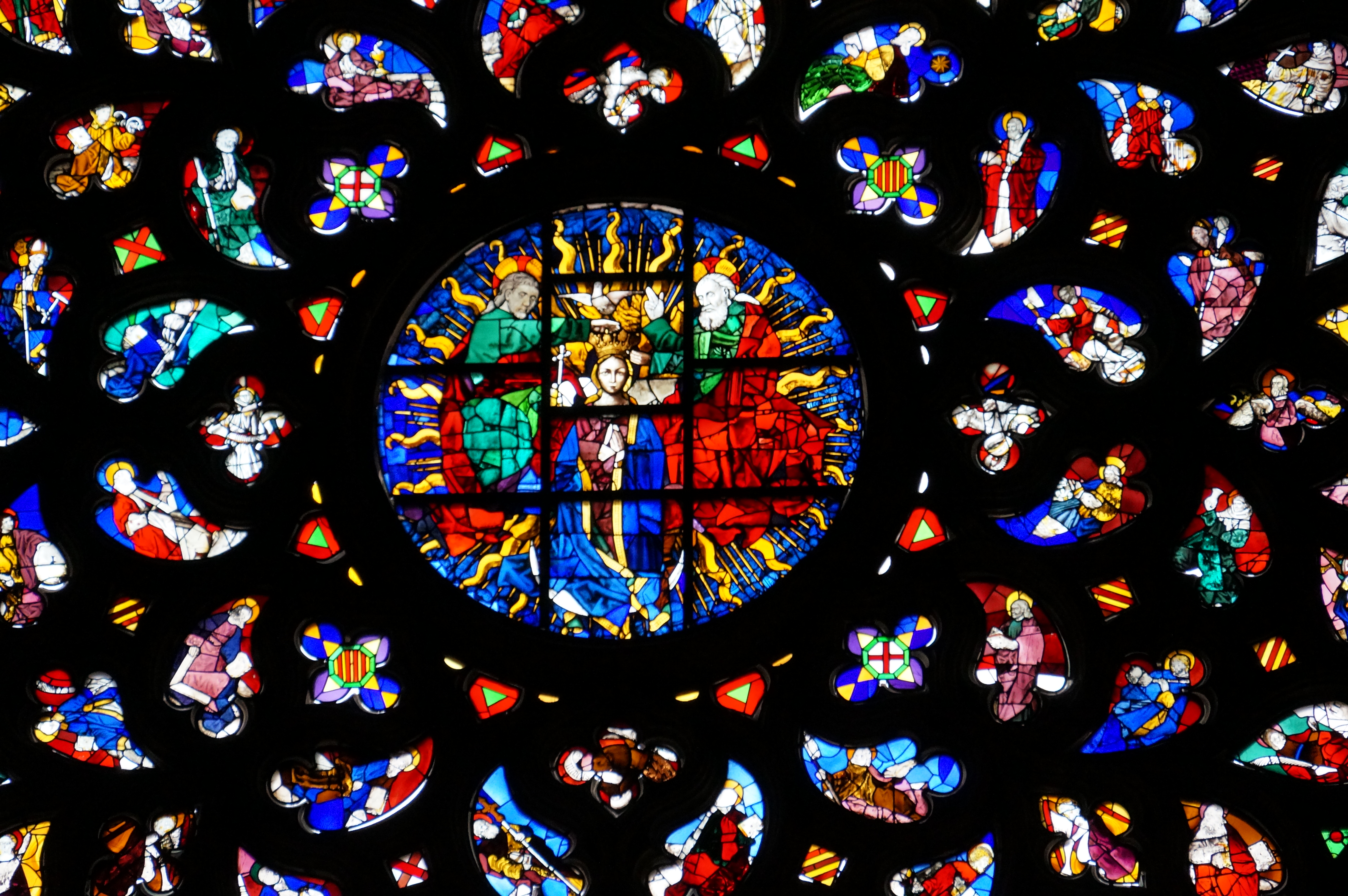 The flamboyant rose window above dates from 1460 as the previous window here was destroyed in an earthquake in 1428.