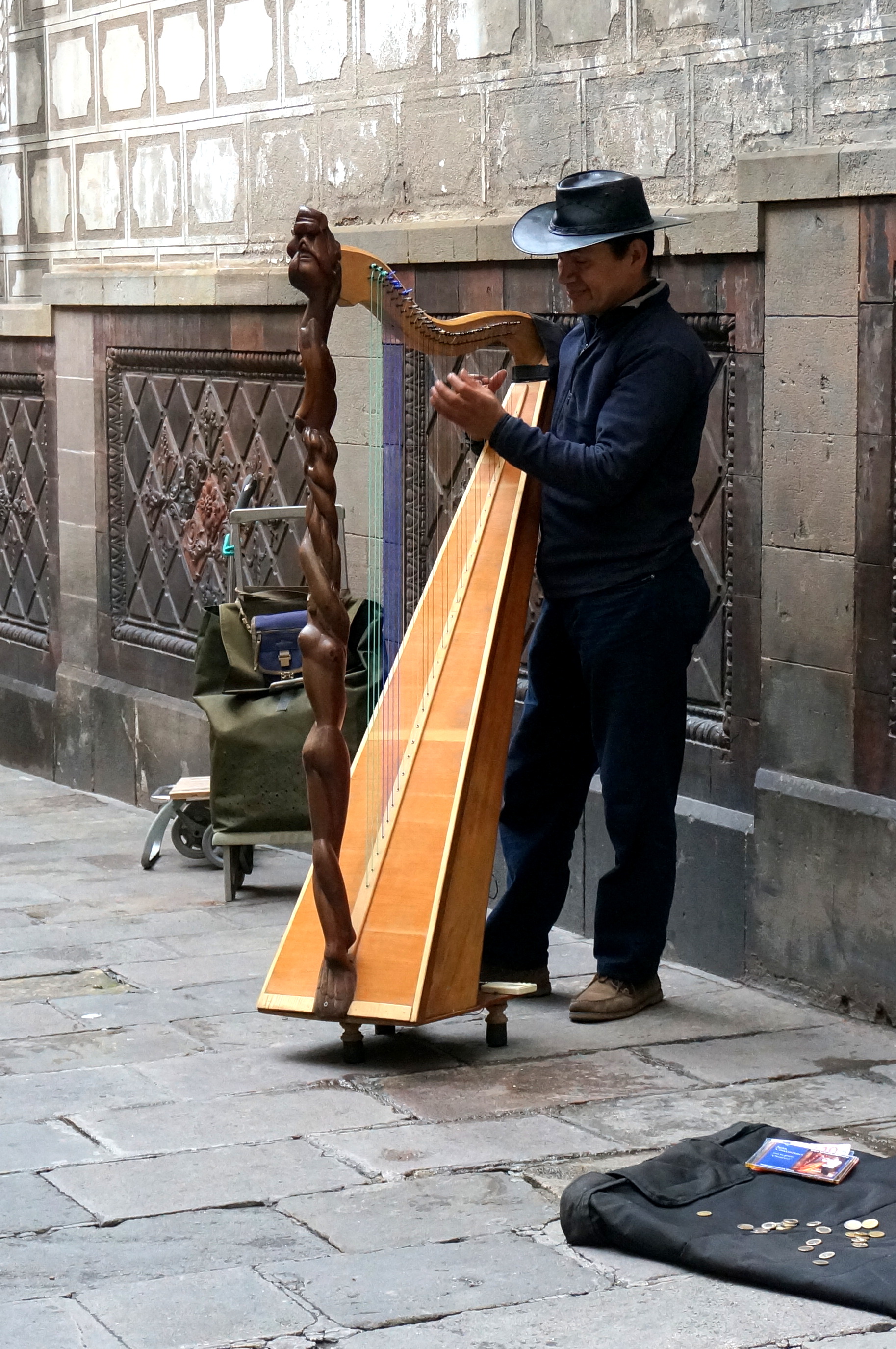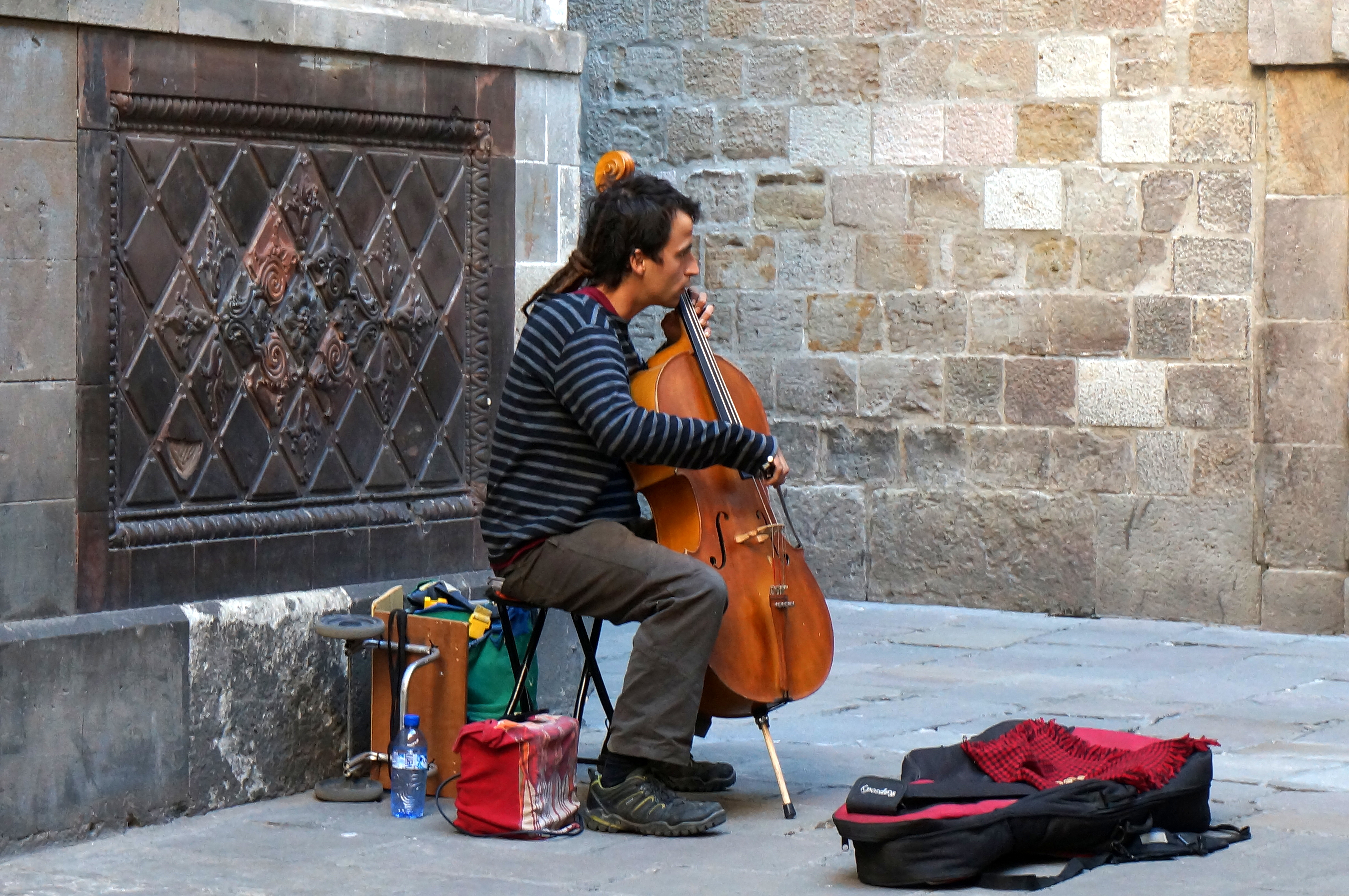 There is always someone playing music in the streets of Barcelona’s Gothic Quarter, though a harp is pretty unusual.