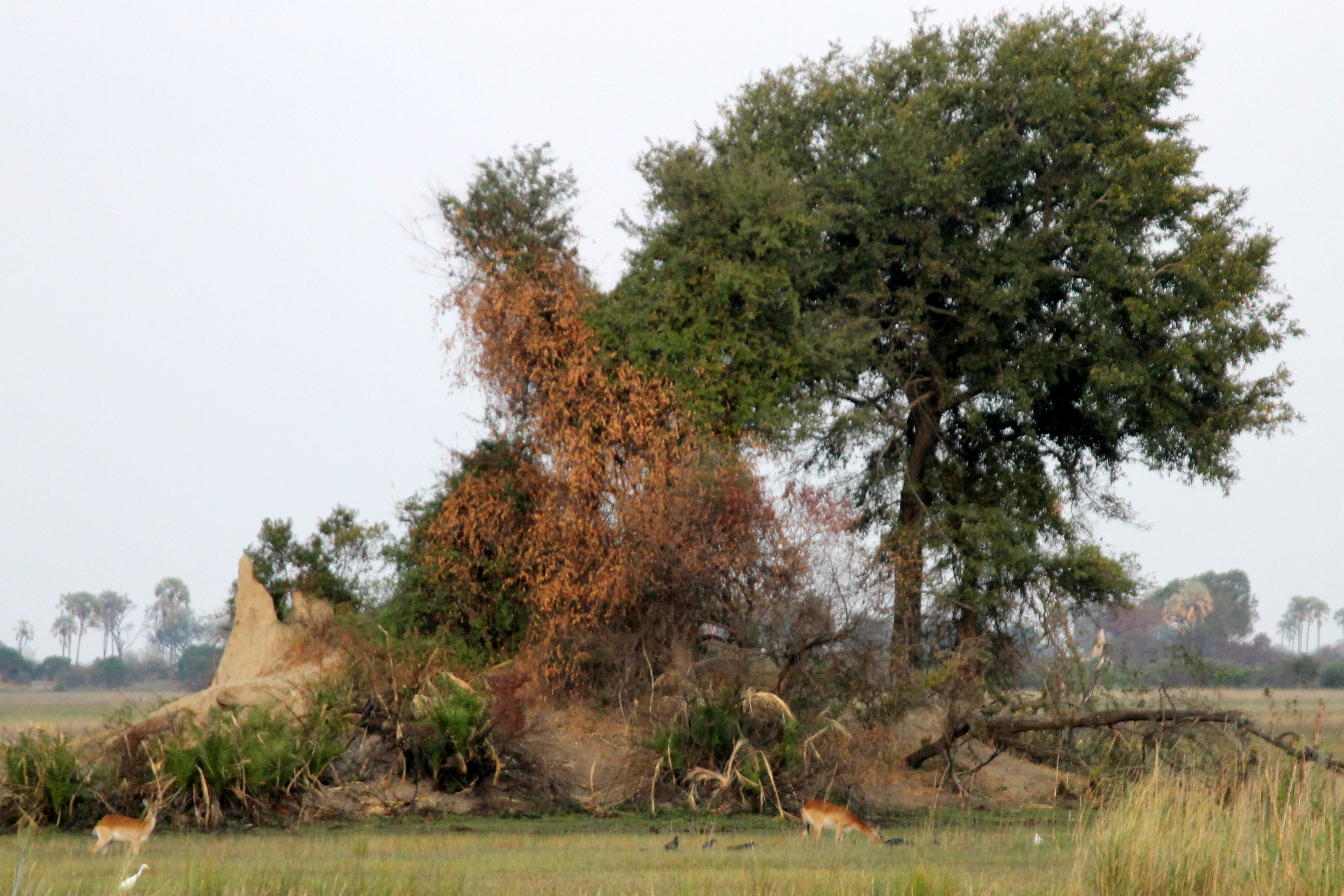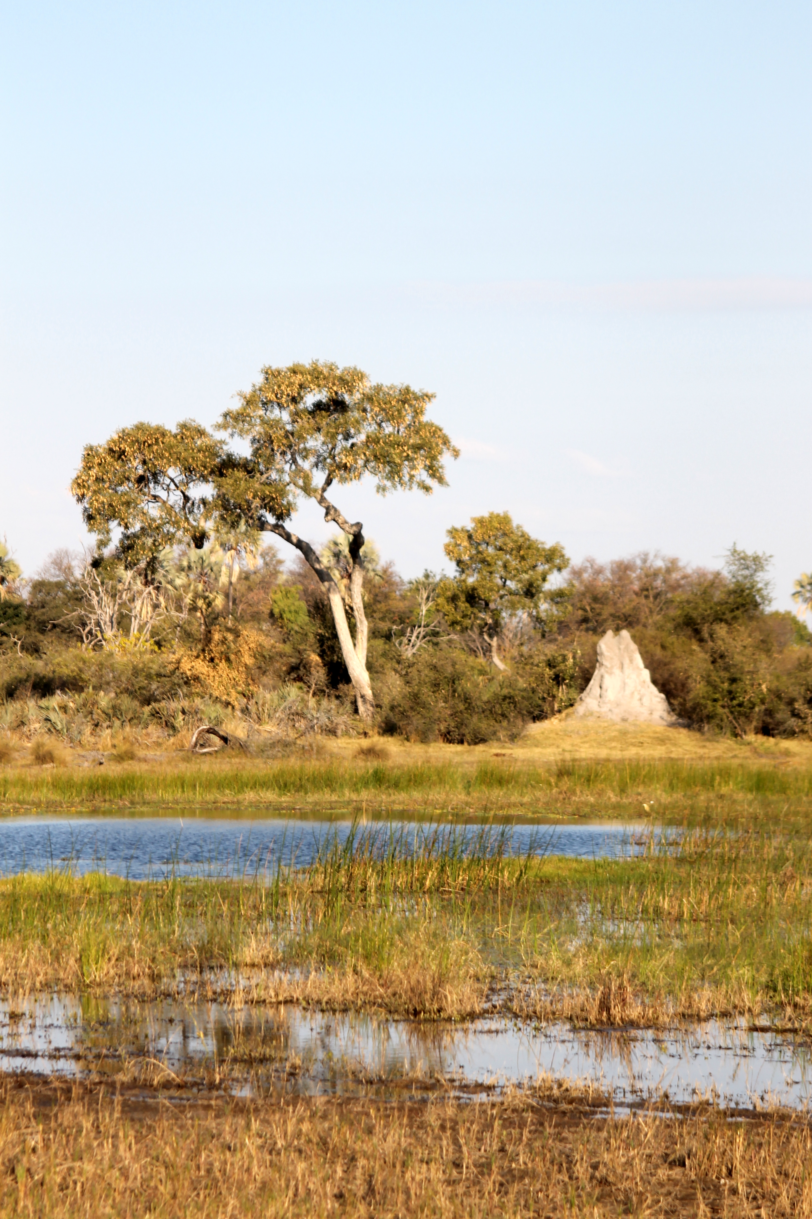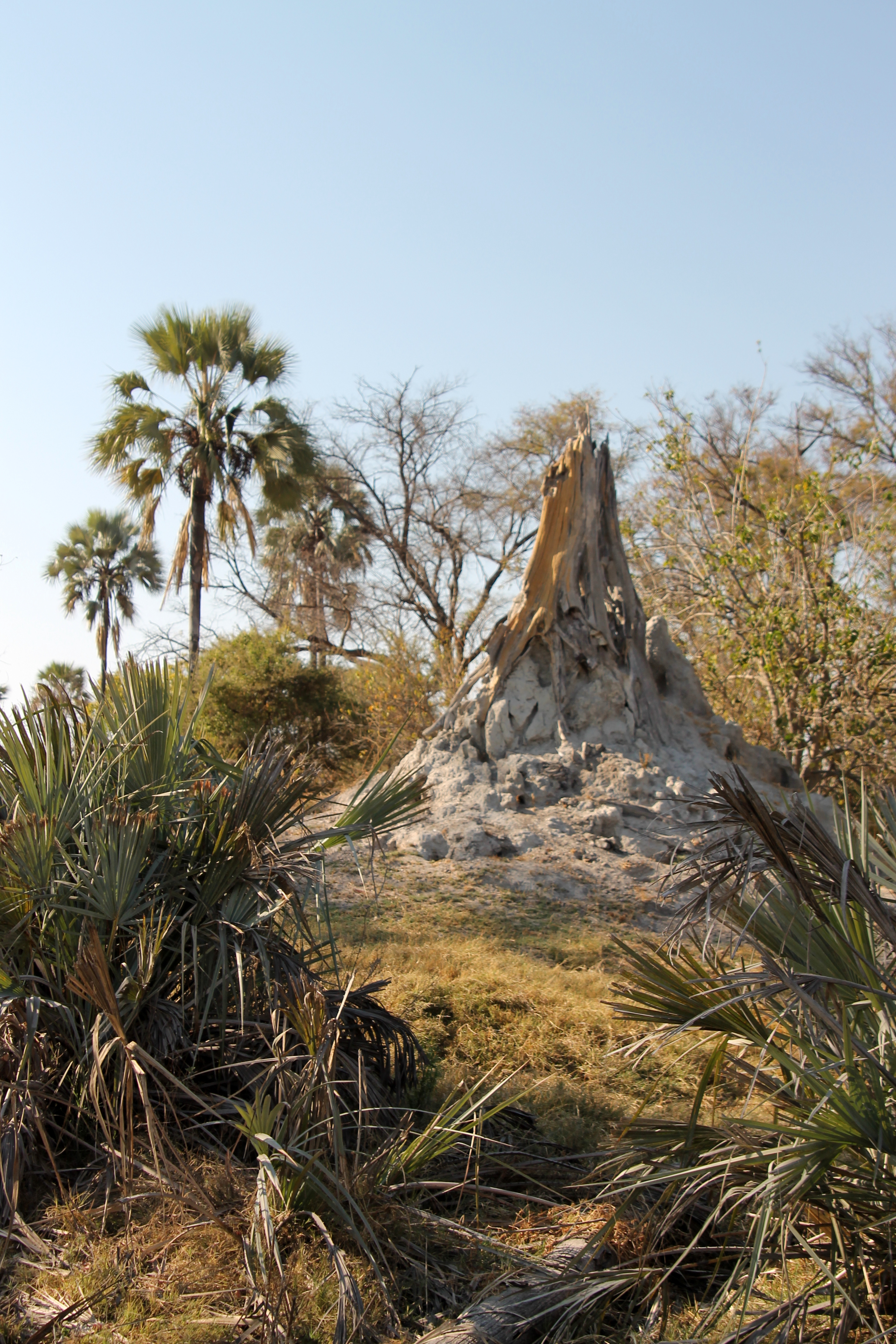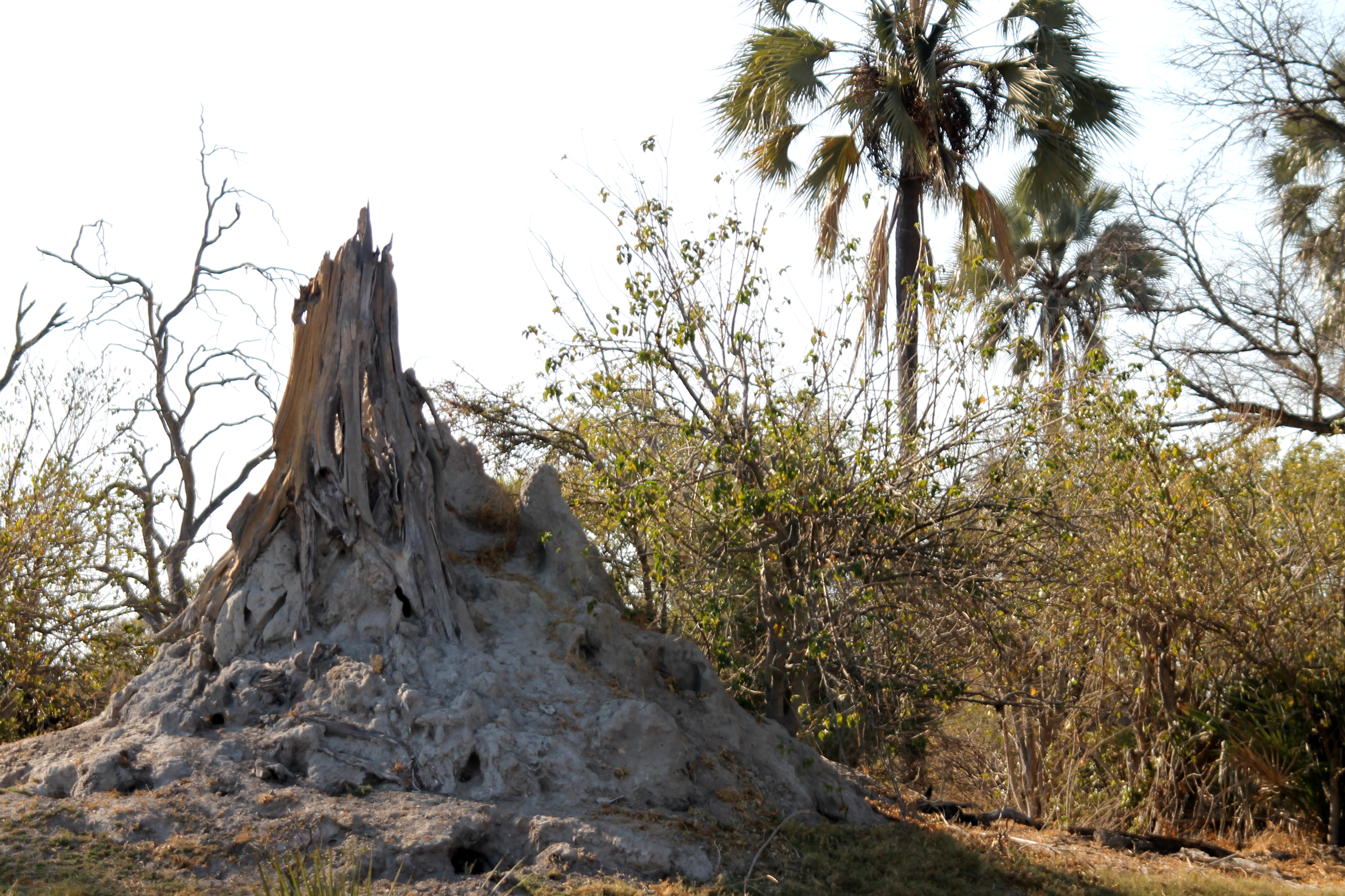 The Okavango Delta in Botswana is a fascinating ecosystem, relying on the water that comes from Angola, through Namibia, to flood the delta annually. When the water levels are at their highest, vast areas of the delta are covered in water, and the few islands that peep up from the water owe their existence to termites.