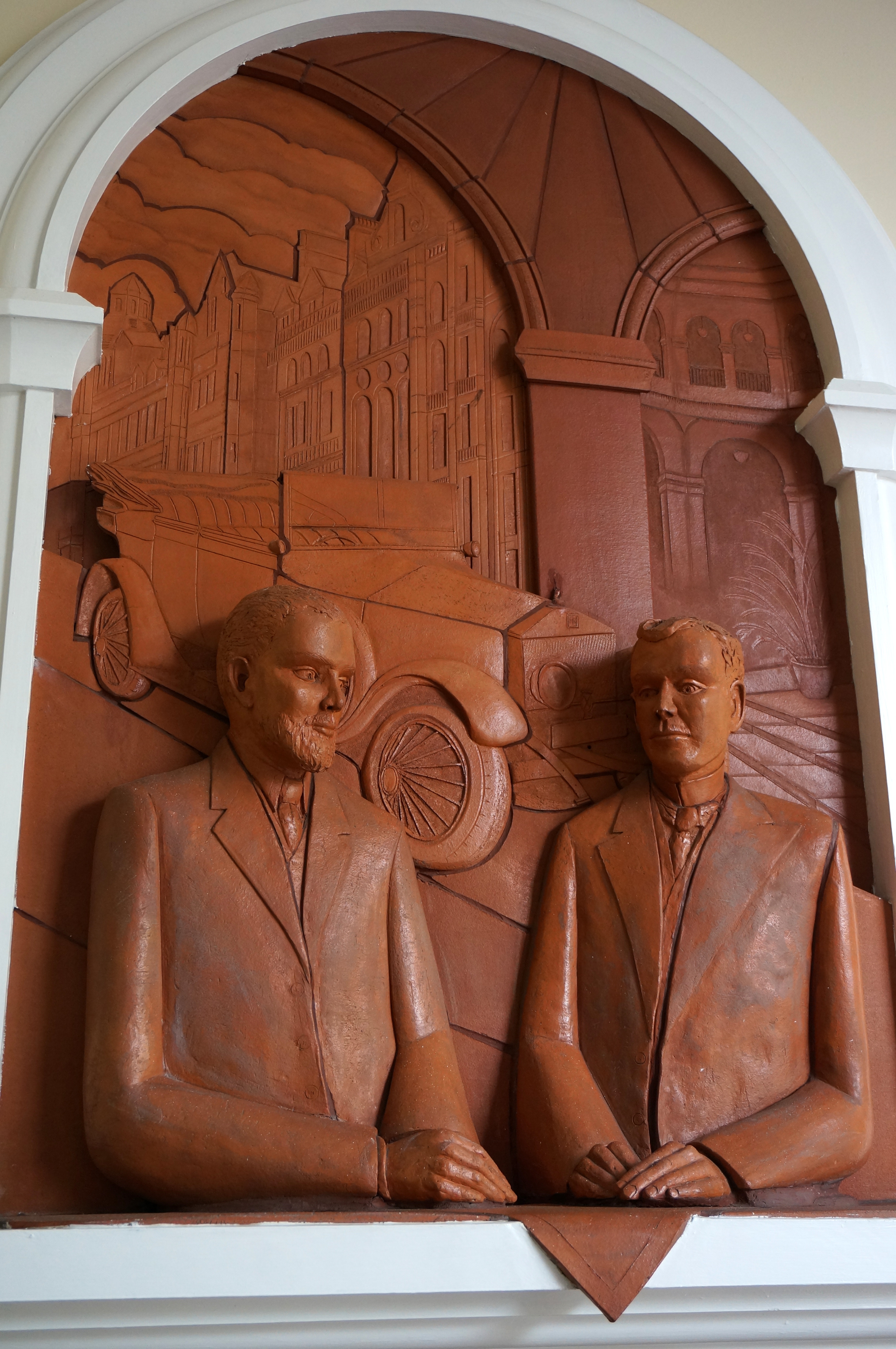 The terracotta-coloured relief above is in the entrance hall of The Midland Hotel in Manchester.