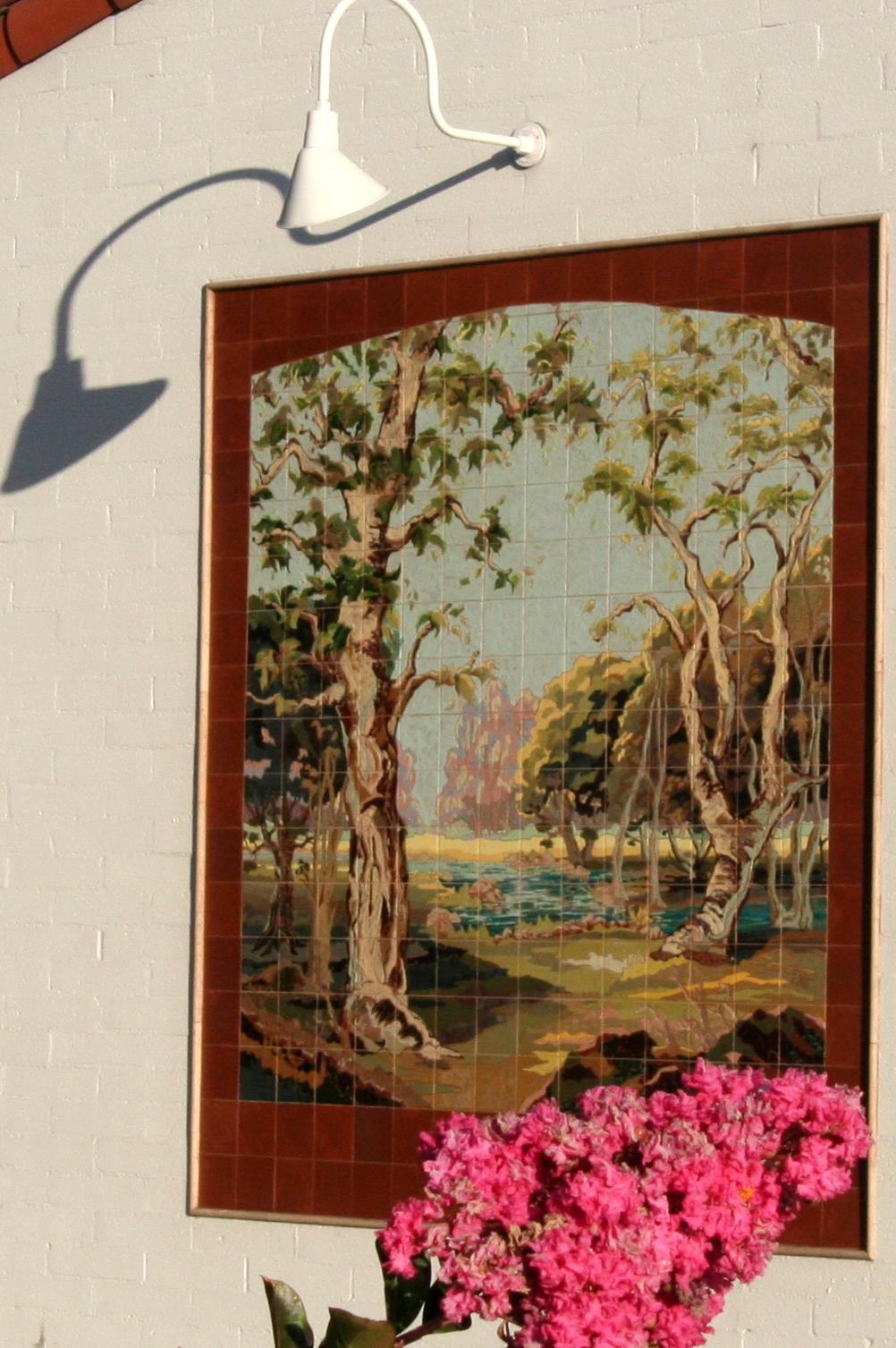This tiled nature mural in Laguna Beach, California is enhanced by the living nature that surrounds it.