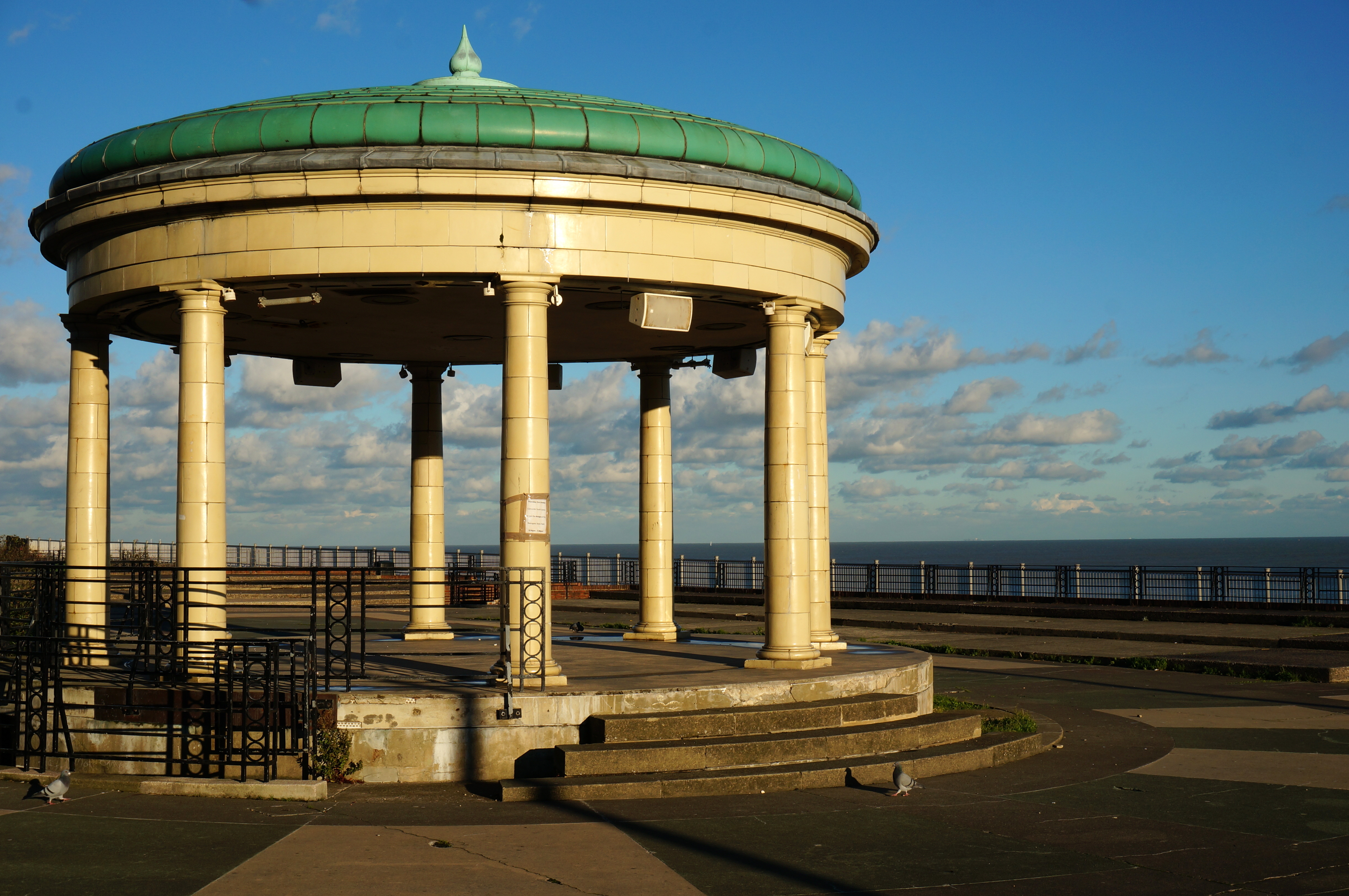 The pillars on the bandstand add a touch of elegance. A wonderful structure adding beauty to the sea view.