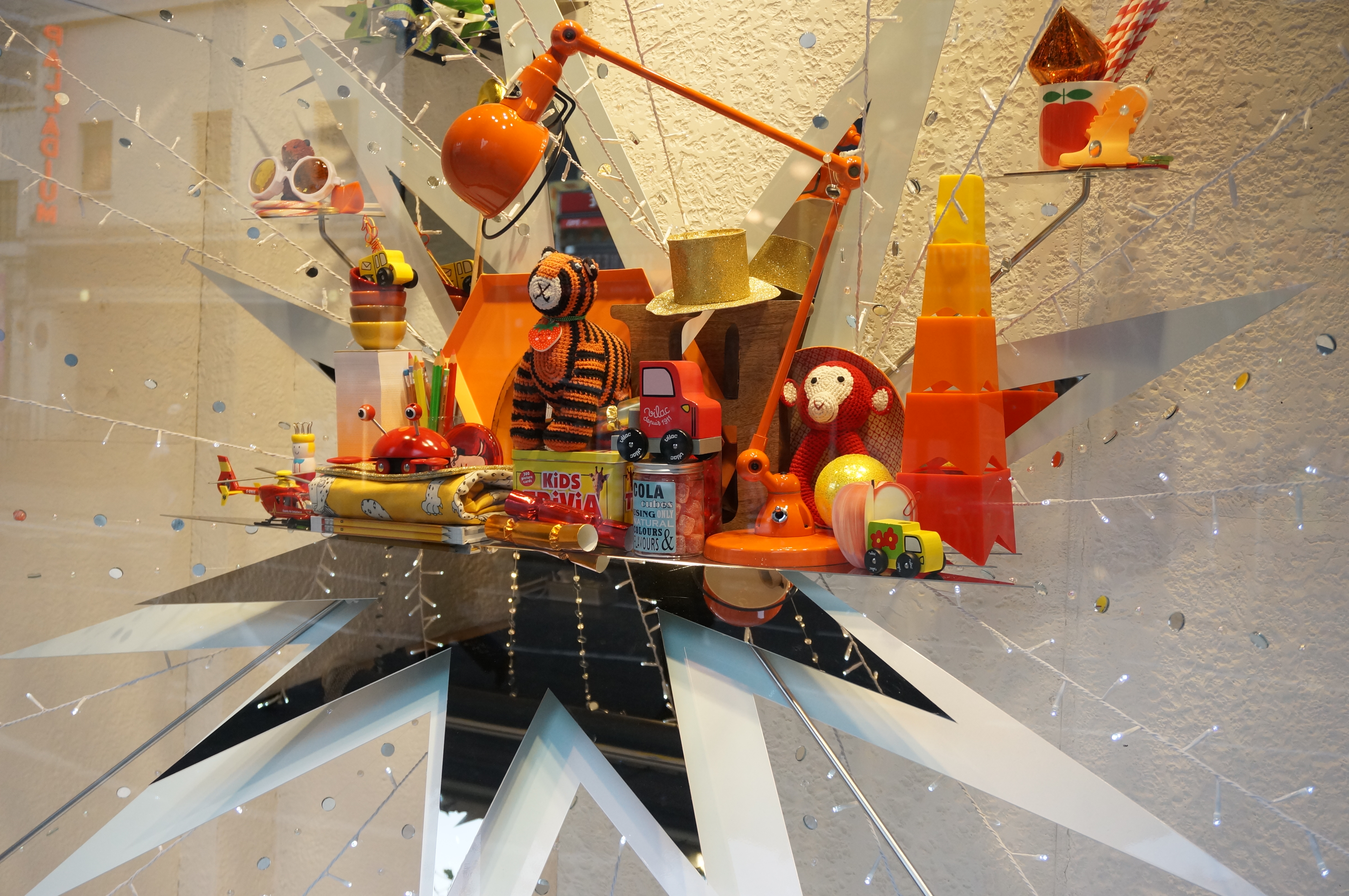 John Lewis on Oxford Street have some fascinating windows, using household implements in wild and wonderful ways! What could make for a more citrusy Christmas than these jolly juicers?