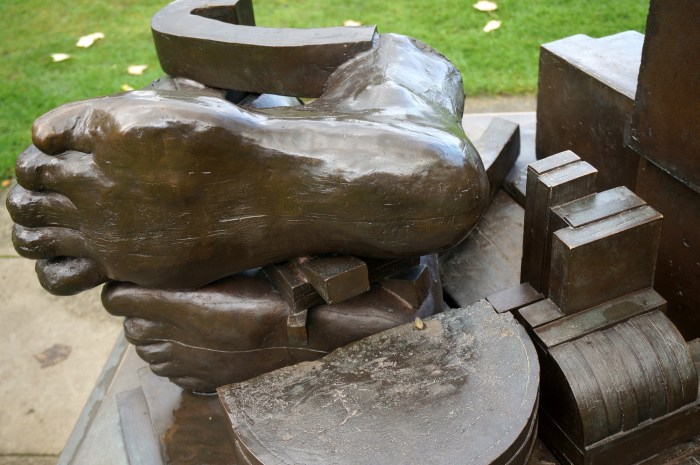 They look like some sort of weird prosthetic limbs. Yes strange sculpture but very inventive , sort of order and chaos?