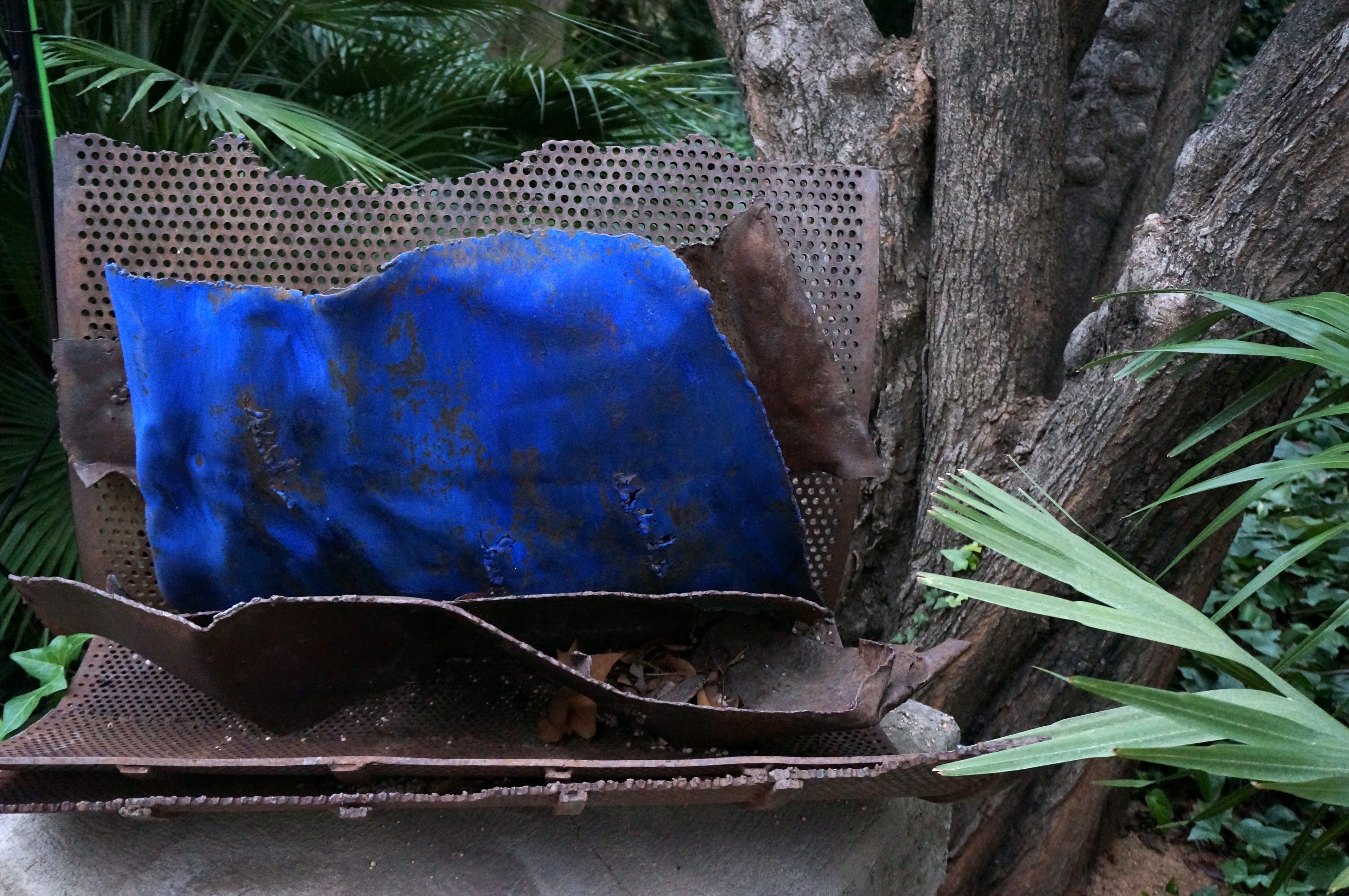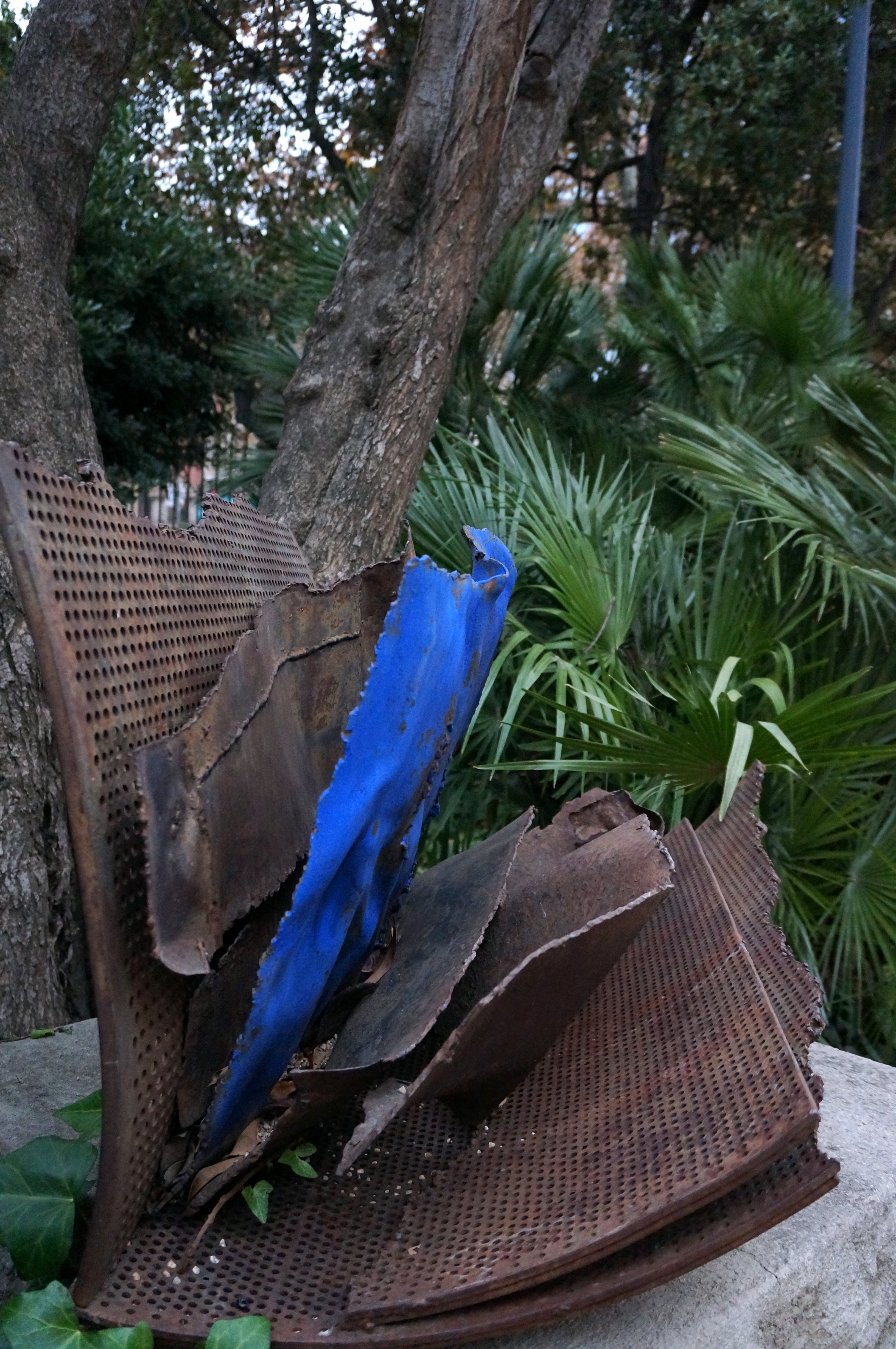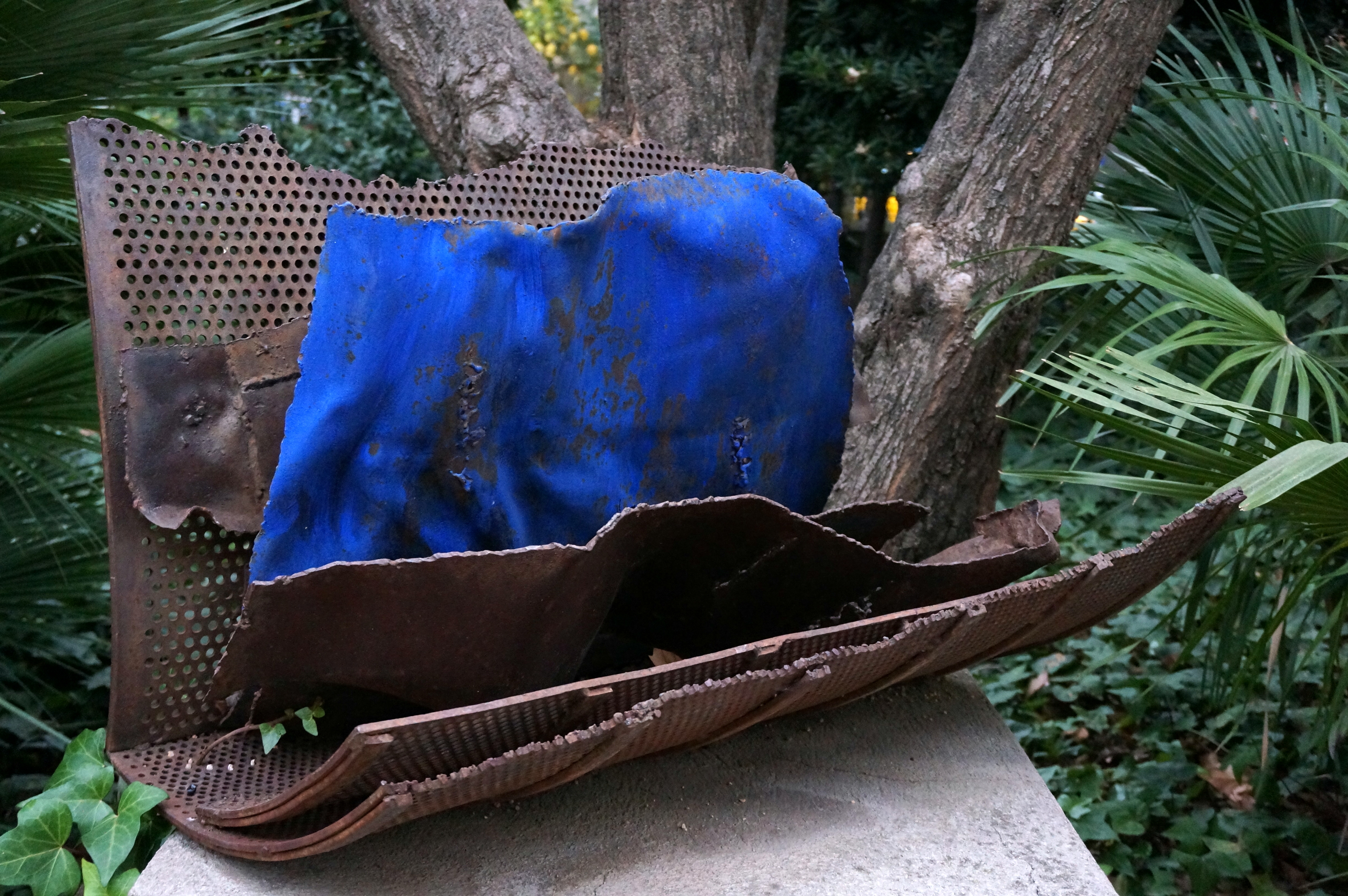 Since 1990, her works have tended to integrate colours and natural materials together with iron, as can be seen in Full Blau, which is on display in the Jardines del Palau Robert in Barcelona.