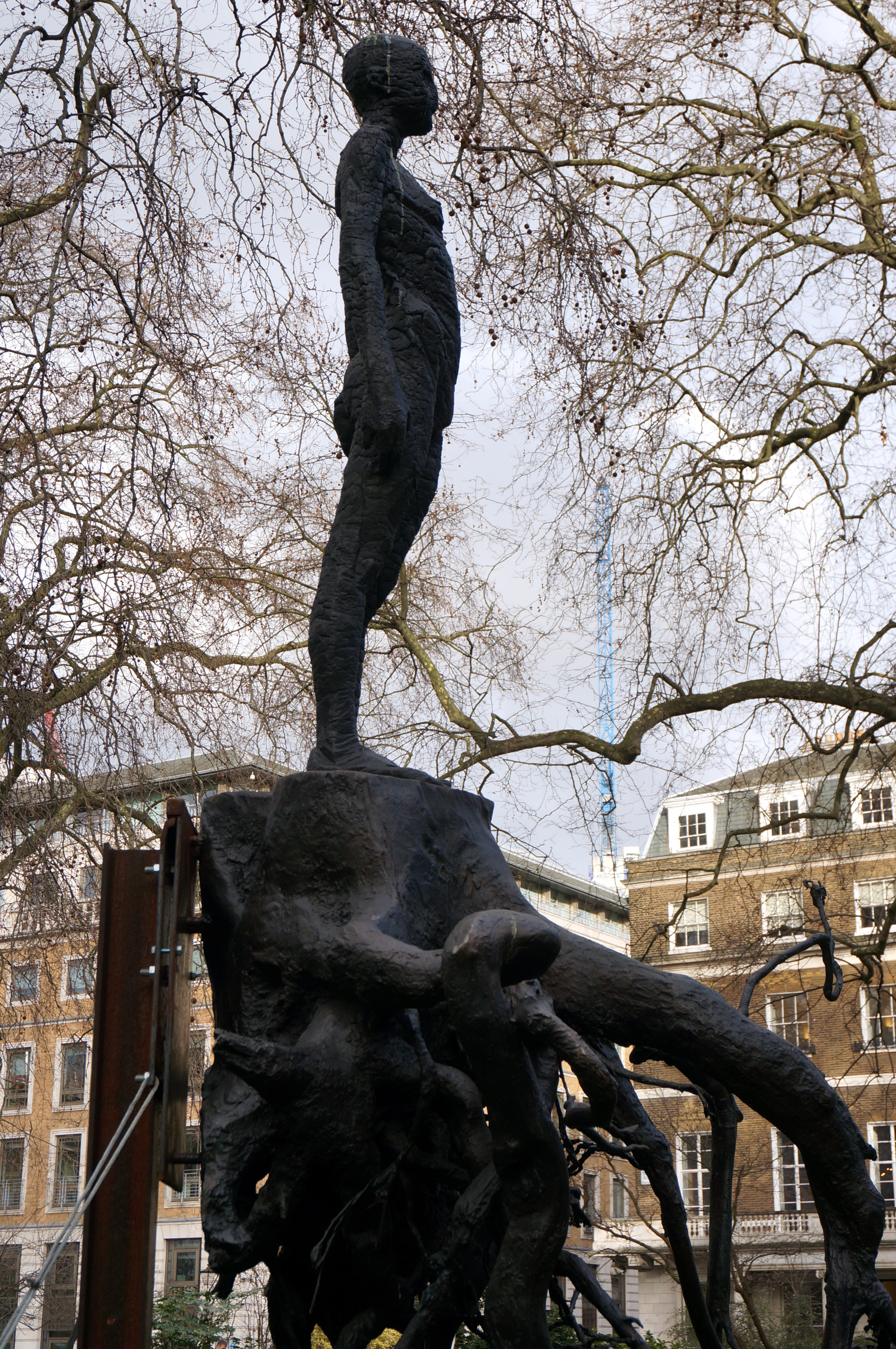 This sculpture is one of two by Italian artist Aron Demetz. They have been on display in St James’ Square since July 2013, but I was rather slow to spot them. As far as I’m aware, they will be moved this month.