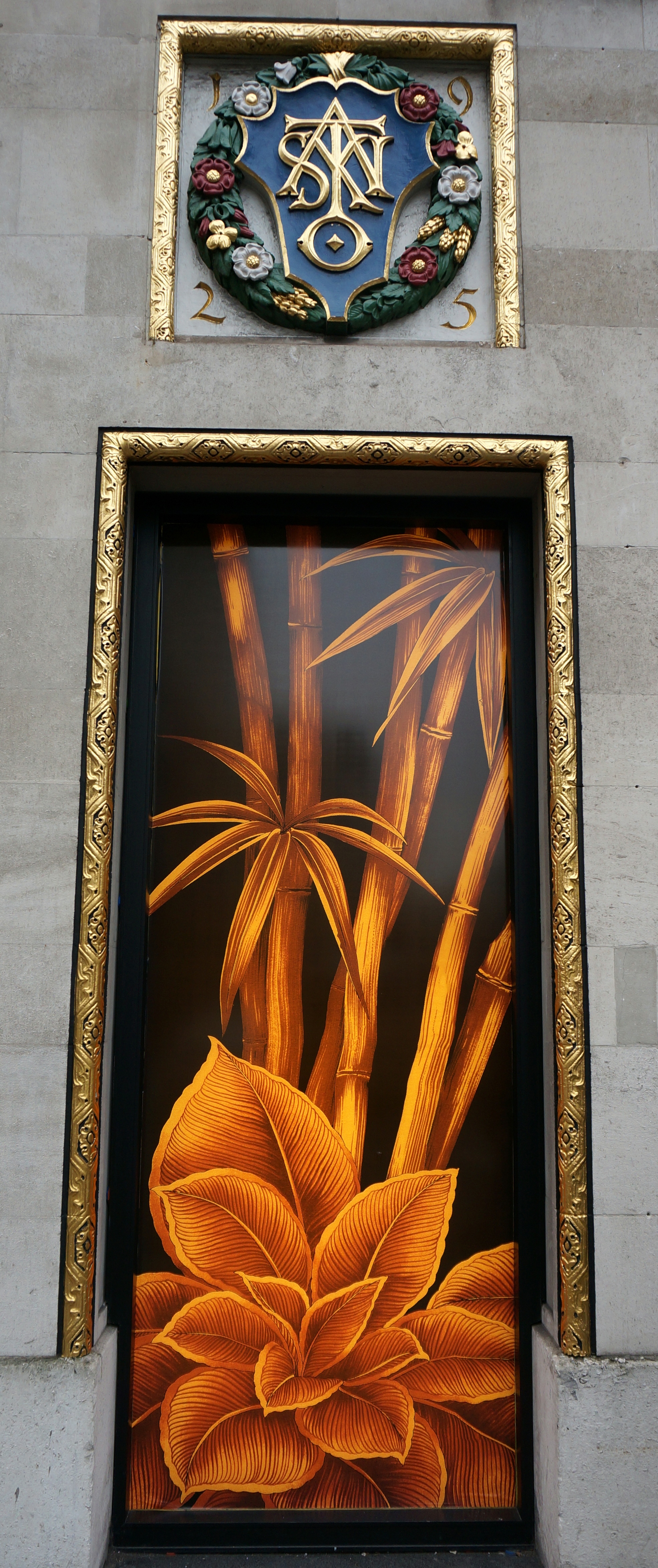 This striking and exotic design can be found at the side doorway to 24 Old Bond Street, the building that used to belong to the famous perfumers, Atkinsons.