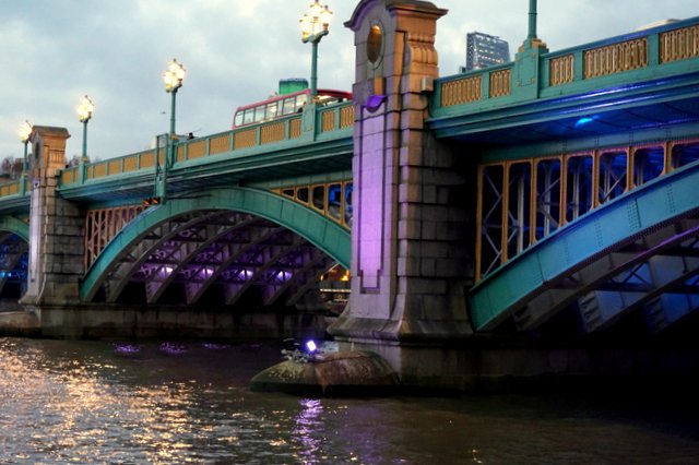 A previous bridge on the site, designed by John Rennie, opened in 1819, and was originally known as Queen Street Bridge.  The current incarnation is a century older than that, being opened in 1921 by King George V and Queen Mary.  It was designed by Sir Ernest George and Basil Mott and built by Sir William Arrol and Co.