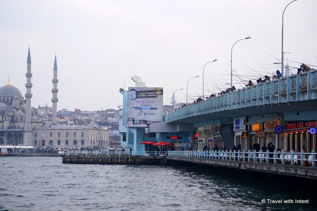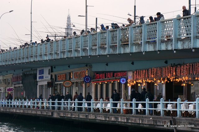 Istanbul’s Galata Bridge connects the old town with the new; atop are the trams and the fishermen, beneath are the bright lights and restaurants, beyond are the domes and minarets.