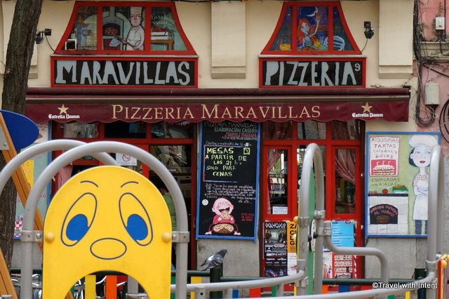 Right in the heart of Malasaña, this brightly decorated pizzeria has an enviable location.