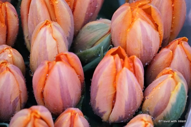 I’m in Amsterdam today. I had just a few hours en route for The Hague and I started my wandering at the Flower Market where I found these tulips.