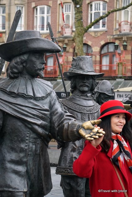 The Netherlands’ famous painter, Rembrandt van Rijn, is commemorated by a large statue in Rembrandtplein (Rembrandt Square), not a million miles from where he lived between 1639 and 1656. It stands high on a plinth with a replica of his signature on a plaque below.