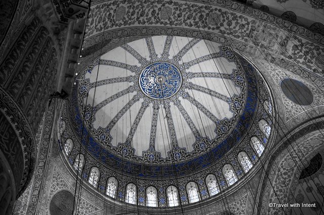The Blue mosque is the most extraordinary place, isn’t it. Love how you’ve washed out all the colour except that circle of blue at the apex of the ceiling
