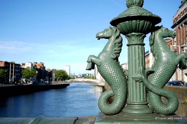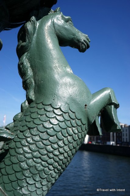 These beautiful sea horses form the base of the cast iron lamps that adorn the Grattan Bridge, one of several bridges that cross the River Liffey.