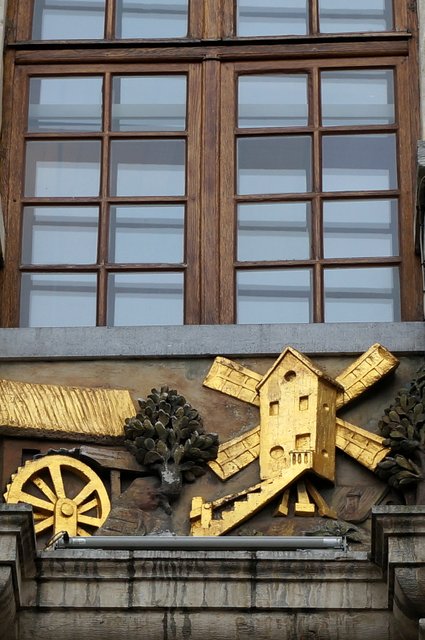 This golden representation of a Belgian windmill high up on a wall in the Grand Place in Brussels doesn’t look so different to an English one.