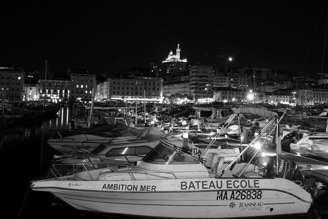 Notre Dame de la Garde, or the Good Mother as she is affectionately known, watches over the old port of Marseille, including the boating school.
