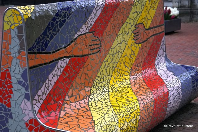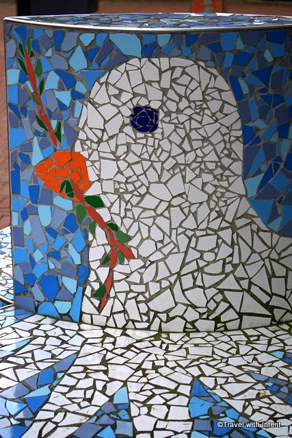 The mosaics below are on benches that stand outside the Peace Palace in The Hague, Netherlands.