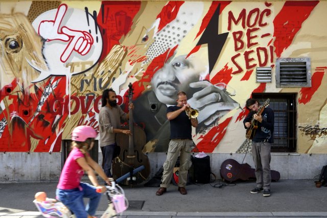 Music in the street creates a very special atmosphere. The background artwork in this photo is stunning.