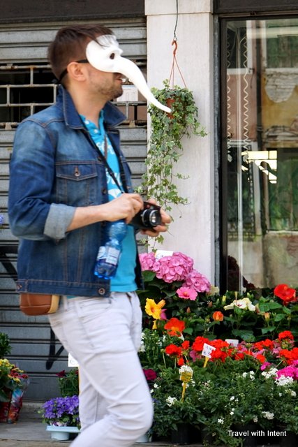 Even if you’re not lucky enough to be in Venice for the festivities, there are plenty of shops selling these masks year round and some tourists don’t let the wrong time of year spoil their fun: