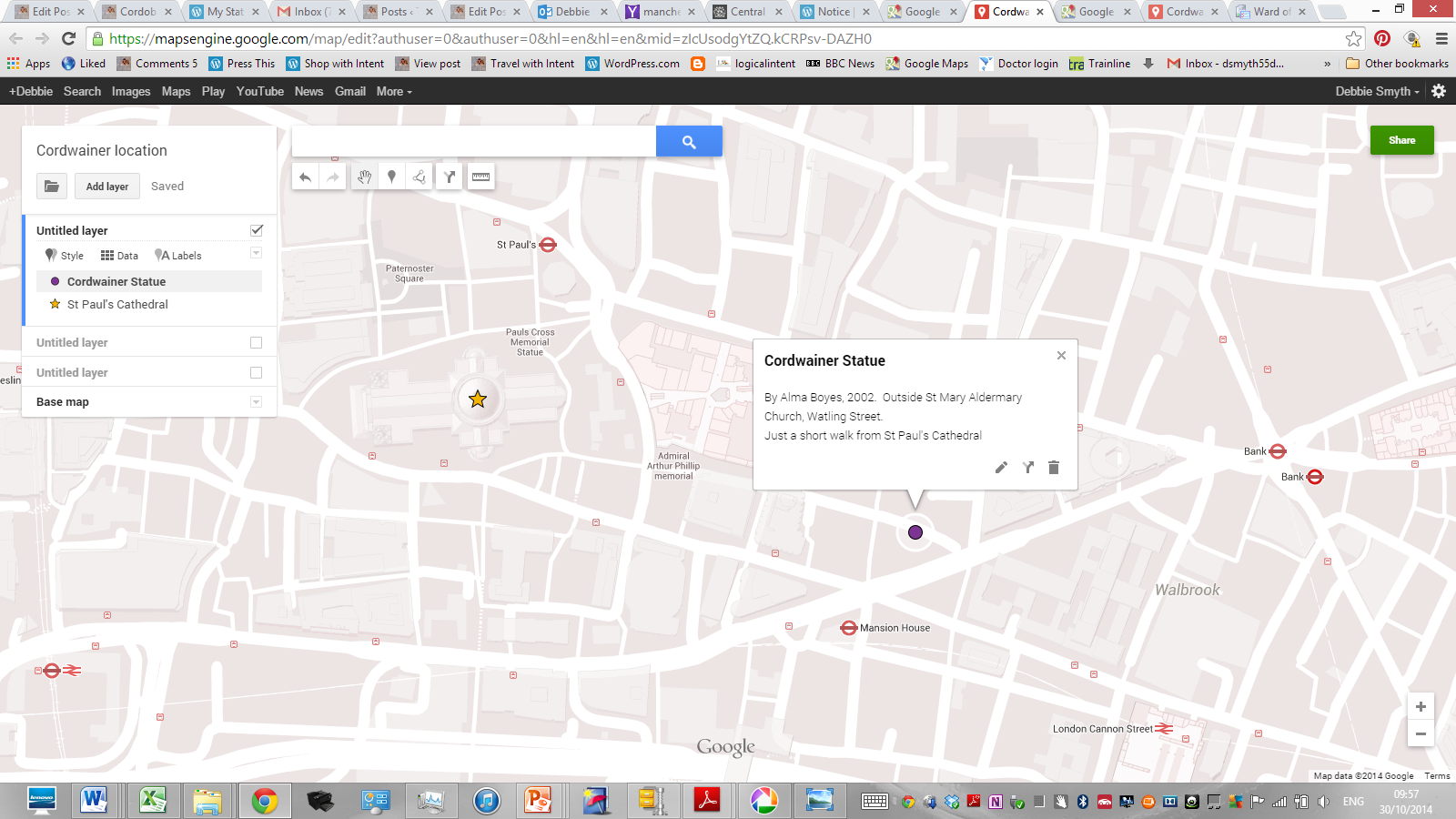 The bronze statue is the work of Alma Boyes. It was unveiled in 2002 in Bow Churchyardbut now stands just outside St Mary Aldermary Church on Watling Street, a short walk from St Paul’s Cathedral.