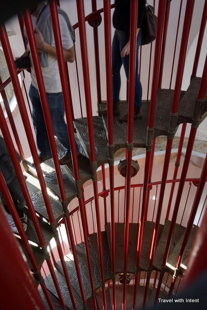 I don’t have a head for heights and I hate dealing with narrow spiral staircases where I have to struggle past people going in the other direction. So these intertwining spirals at Ljubljana Castle were a joy; one staircase for ascent, one for descent.