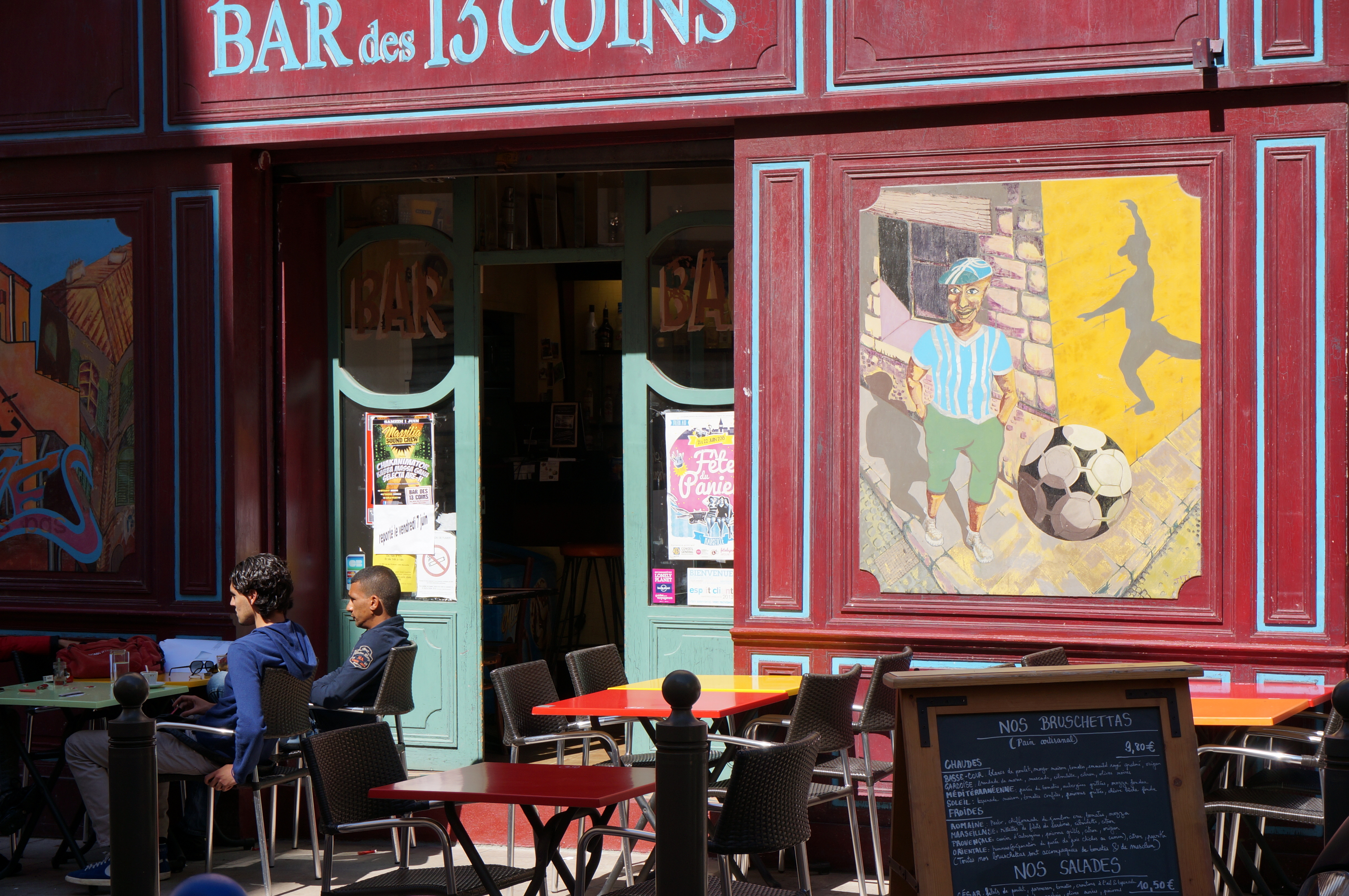 I was sitting at the popular Bar des 13 Coins, the one of Jean-Claude Izzo fame, enjoying a peaceful late lunch, when the voice of the train’s guide cut through the air.  I love the ambience of this district, I love its narrow streets, its quirky one-off shops and workshops, and I love the fact that it’s not overrun with tourists. Thankfully the road train won’t be able to get everywhere, but even this disturbance is too much.