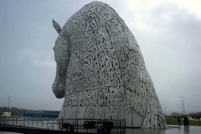 The pair of horses stand right on the banks of the canal and you can walk from here to another incredible engineering feat, the Falkirk Wheel. I have to return in better weather to make that walk, and I also need to return at night as the sculptures are illuminated inside and out and must be a marvel to behold in the dark.