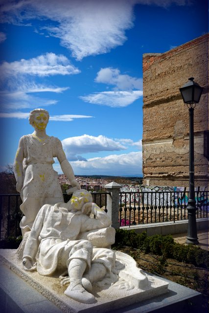 It is sad to see this lovely statue defaced. And just as sad to see the public space so neglected.