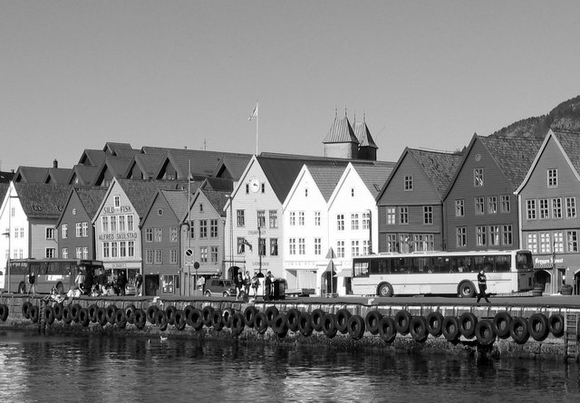I like the lines and angles of the buildings and the way it contrasts with the smooth water and the tires.