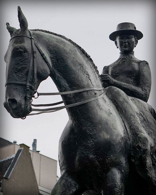 1. I know nothing of the Queen but from the angle you have taken the photo – looking up into her face – she shows a kind of superior, though not hostile, elegance. While the eyes of the horse have a surprising gentleness.
