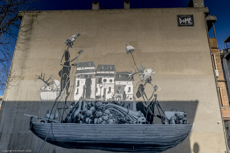 This intricate piece by Christian Kraemer (b. 1975 in Karlsruhe, Germany), aka Dome, has adorned a huge wall in Kadıköy since 2012. To fully appreciate the level of detail and the amount of work involved in creating something like this, click here and watch a fascinating timelapse video of the work being created.
