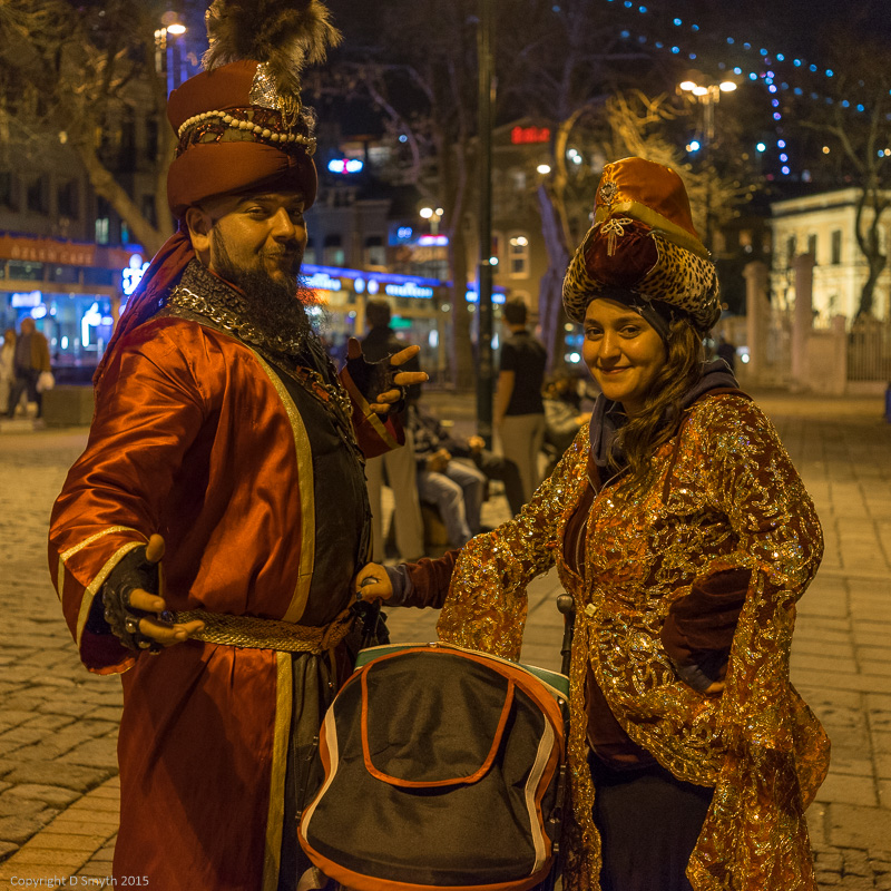 I met this charming couple of street artists early one evening in Ortaköy. They pose for photos in these extravagant costumes that are made of recycled scraps and rubbish, and the guy is also a fortune teller. He read my coffee grounds and his predictions seem pretty good so far!