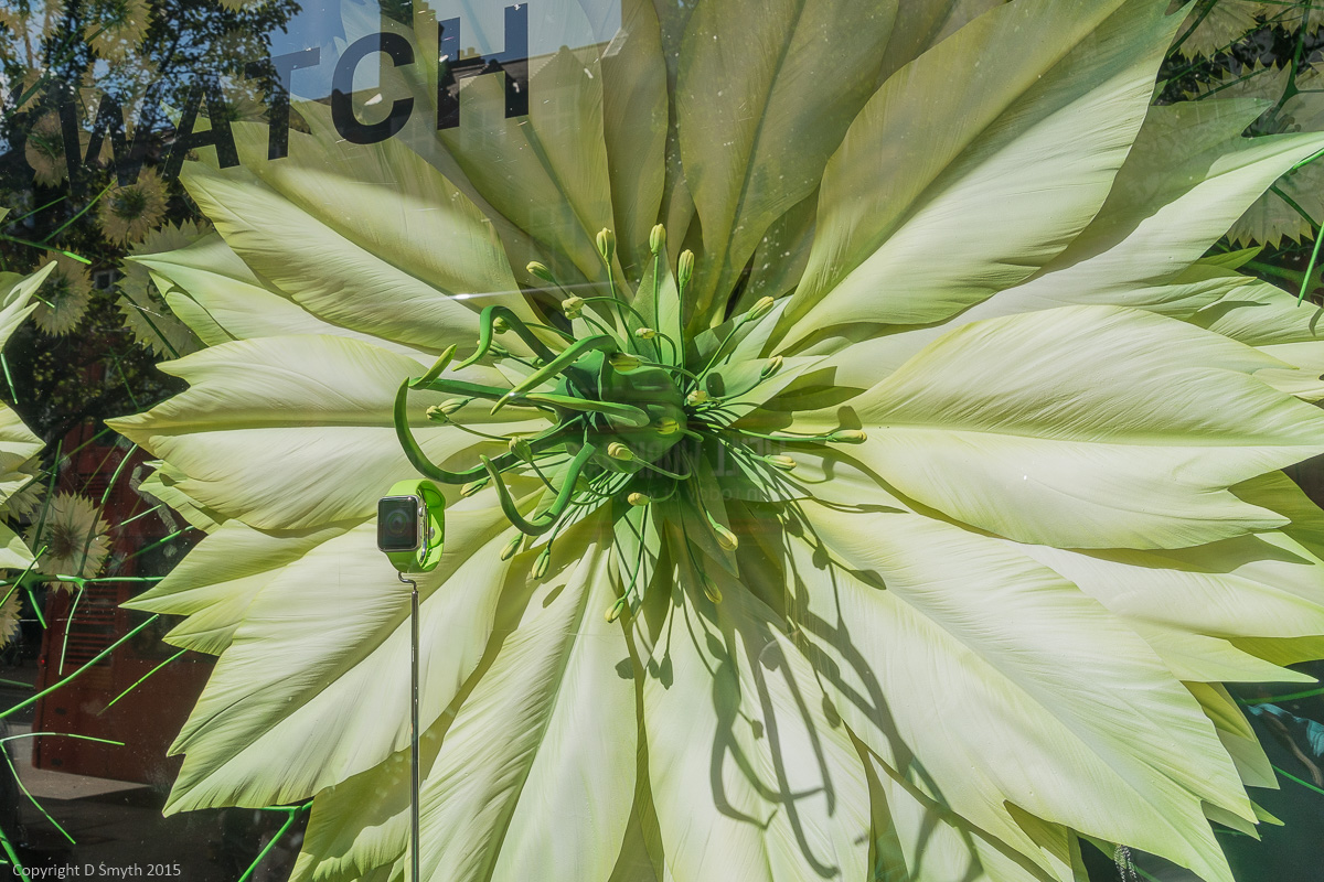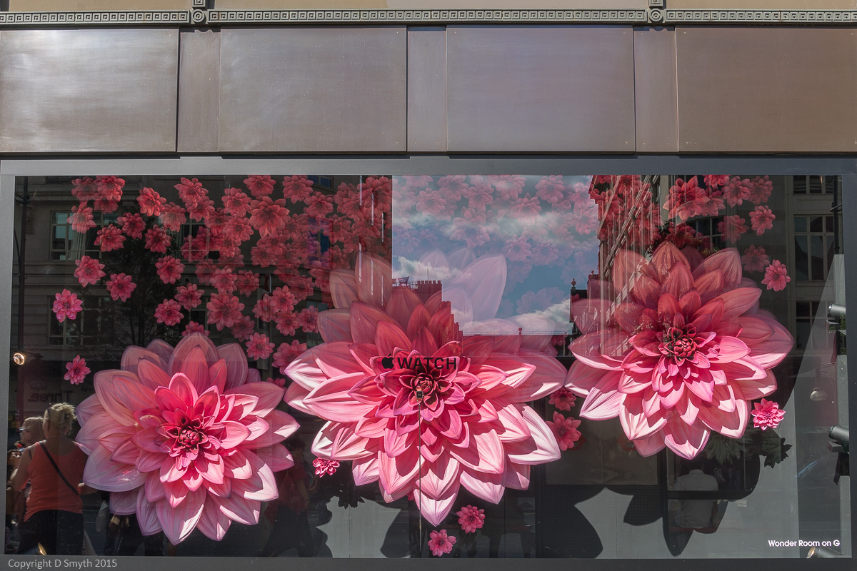 The answer is Apple Watch. This watch come fitness monitor come weather station come sat nav crosses so many technologies and retail categories that Apple have chosen to widen their reach by opening some Apple stores within other stores. Selfridges is one of these select host stores and the collaboration has extended to these spectacular window displays.