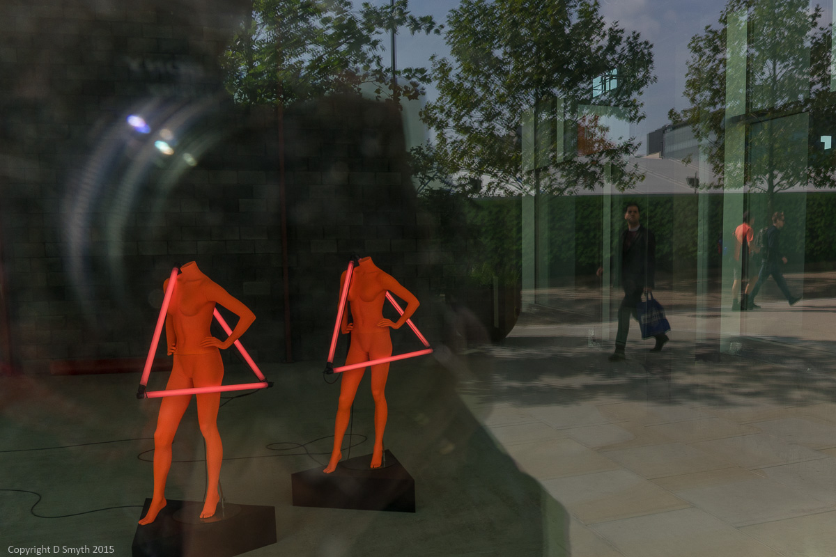 Apologies for the googly eyes! The orange models are inside, everything else is reflection – my camera plus passers by