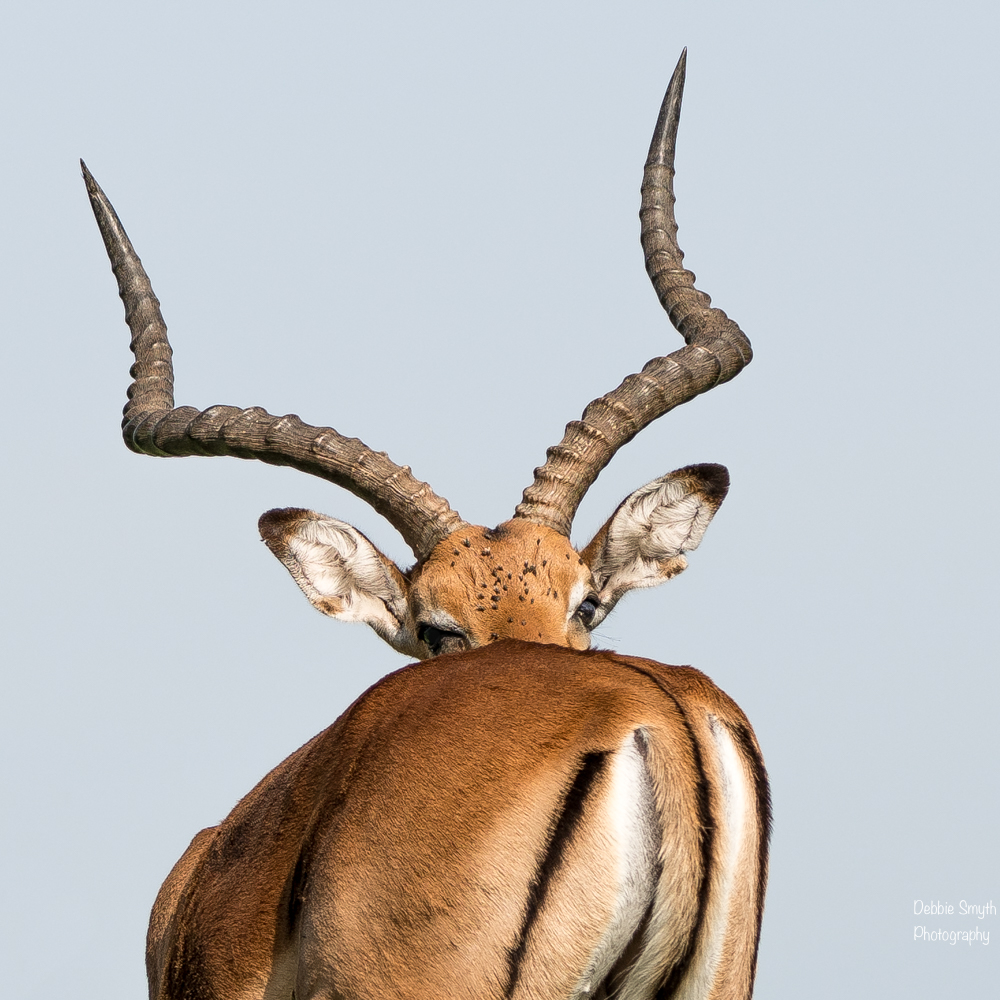 This impala happily turned to the camera to flaunt his impressive ridged horns. Only the males sport these lyre-shaped horns, that are used to prove the dominance. The shape allows them to intertwine the horns when fighting and use them to toss the opponent away.