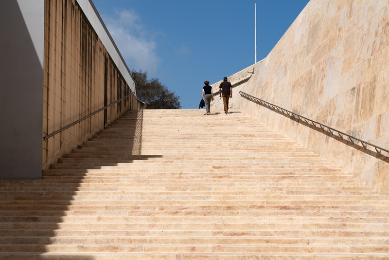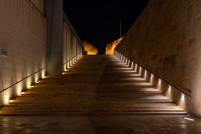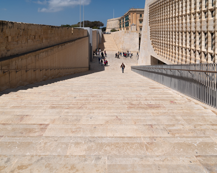 A major demolition and rebuild of Valletta’s City Gate took place between 2011 and 2014. The two flights of stairs shown here, were part of that major rebuild of the entrance into the city. The first gated entrance to the city was built in 1569, with several replacements through ought its history.