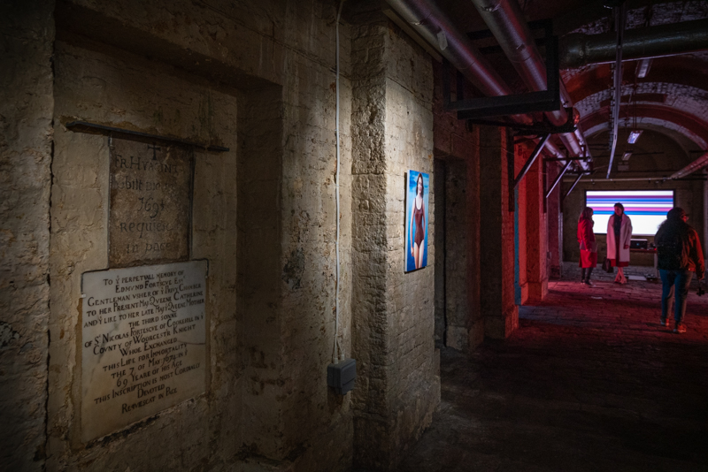 Yes, it’s an area down below the fountain courtyard – gravestones added during a Georgian rebuild, apparently. It’s not usually visitable, but there is a guided tour that goes down there, it seems. And it is available for hire for filming, parties, etc.