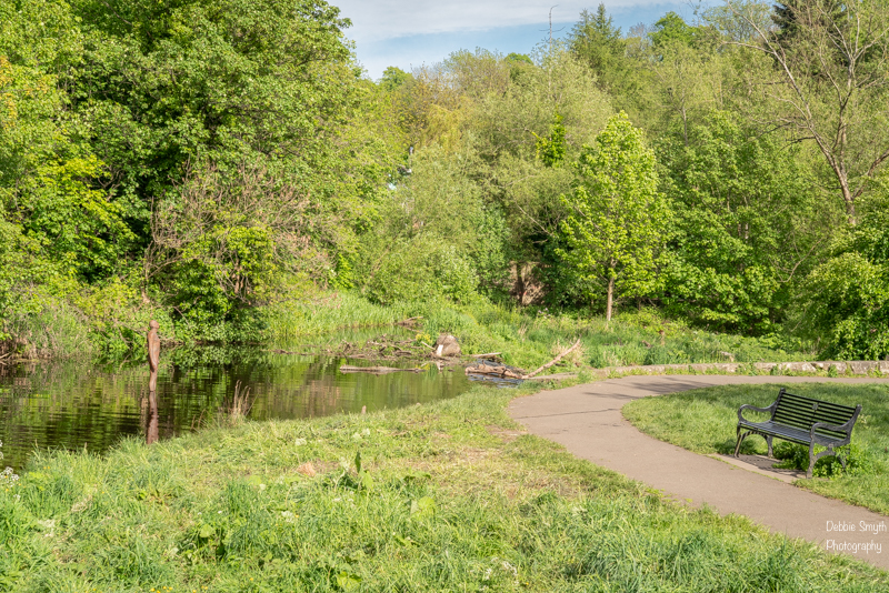 Calories and sugar levels topped up, let’s head down to the river – the path down is right outside the cafe garden. At the bottom is a small wooden bridge to take us across to the river walk, where we turn left to head towards Leith.