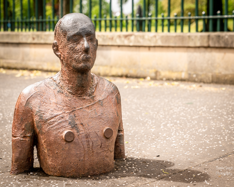The first of the Gormley look-alikes is buried at the entrance to the Gallery of Modern Art. The 6 Times men are replicas of Gormley, but each with a very slight difference in attitude. The “Ground man”, here, has a very low-level view across the road in the direction of the distant sea, that he cannot see. I’m not sure why he his buried to his chest, but he makes a quirky start to our hunt, giving us just a hint of what is to come.