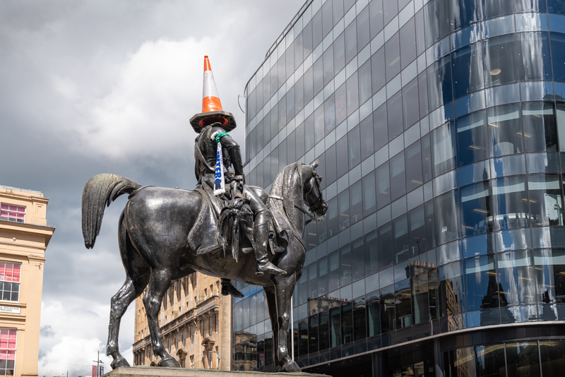 There are several equestrian statues in central Glasgow, and most of the riders have gone for traditional feathered fashion for their head gear: