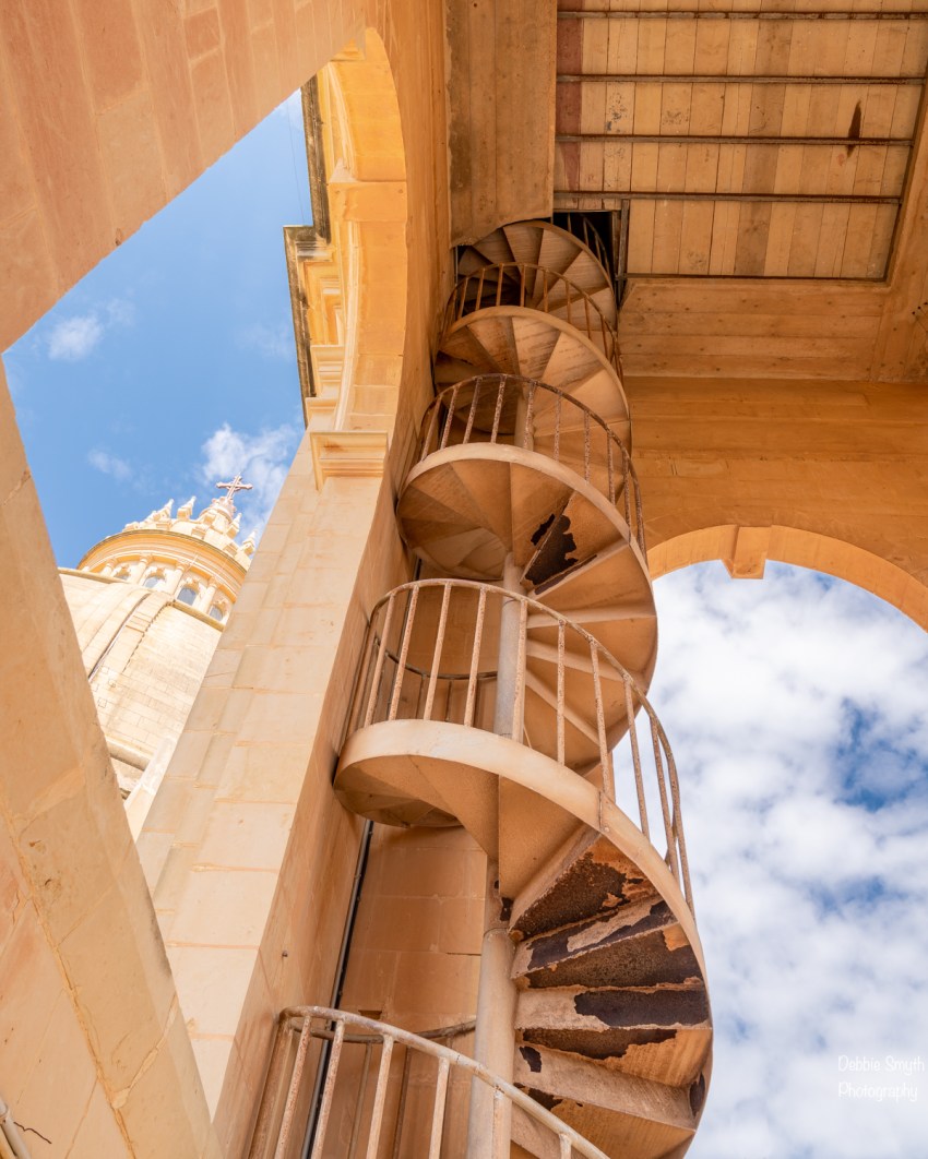 The dome of St John’s is visible in any view across the island, and I knew I had to climb to the top before I left. I hadn’t expected this open spiral staircase, which was waiting on top of the dome. Clambering up it isn’t too bad. Coming down is a different matter!