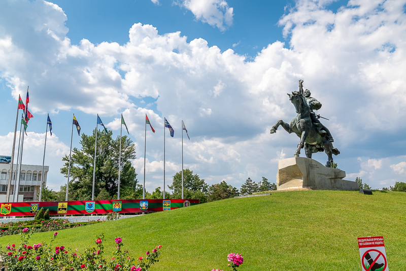This statue of the man on horseback was created in 1979 and sits in the main square in Tiraspol, capital of unrecognised Transnistria.