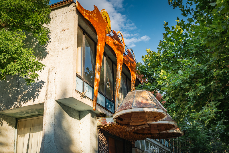 This deserted building was a former bar and restaurant, going under the names of Stalus Bar, Guguta Restaurant and Restaurant Noroc. As far as I can tell the building dates back to 1980 / 1981, and the domes over the door were added to represent the hat of a much-loved fictional character, Guguta, after whom the place was then named. Little Guguta with a big hat is so polar there is now a desert named after him, but that popularity didn’t give the restaurant a long life, sadly.