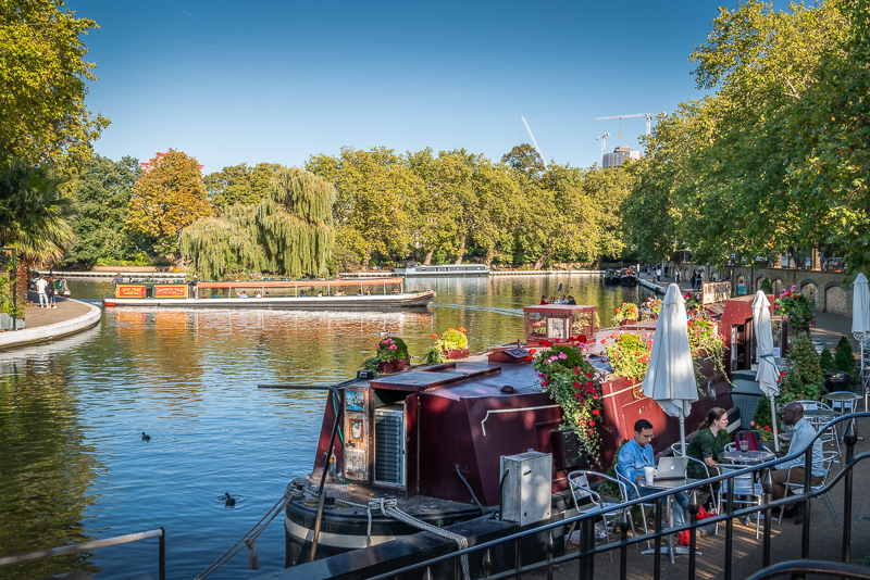London is still happening above our heads, with all of its usual rush and noise, but down here we can just enjoy the views and imagine we are miles away. In fact, the canal takes us through London Zoo and we may well spot a few animals to help our imaginary wanderings. The African hunting dogs can often be seen as we pass below the “Into Africa” section. And just beyond the zoo, you’ll spot a few mansions that have views onto Regent’s Park in one direction, and down onto the canal in the other.