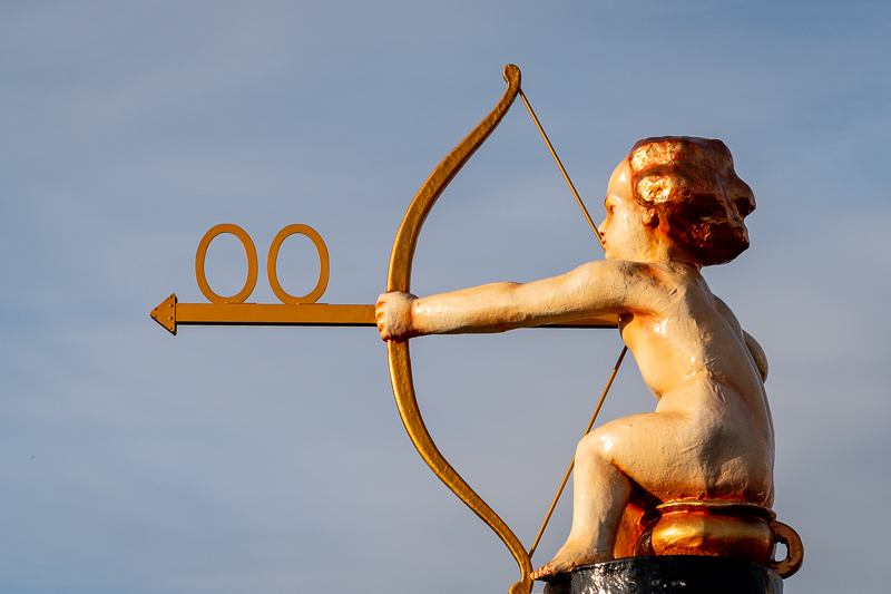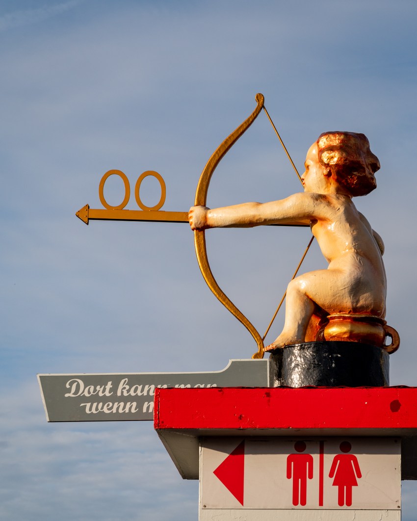 Cupid pointing the way at Oktoberfest, Munich, September 2019