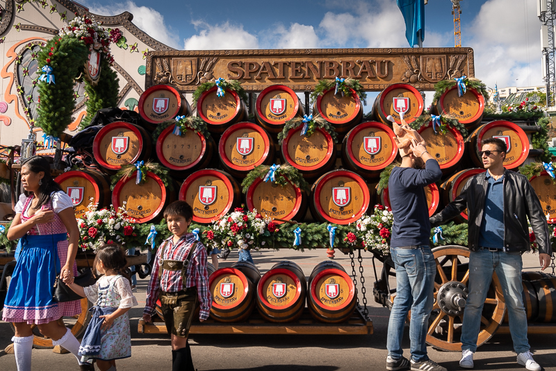 Many people step out in their classic dirndl and lederhosen, but a beautiful traditional outfit will set you back a euro or two. At least 300€ for good quality dirndl, it seems, and it’s easily possible to spend a lot more than that. I also learned that if you are planning to be a regular visitor to the festival, you should have 3 outfits. Not because they wear out but because your waistline increases.