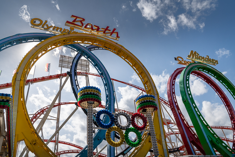 Let’s start with the olympics. Barth’s Olympic Looping rollercoaster flies along for 1250 metres, circles 5 loops, reaches 100 km an hour and delivers 5.2G pressure. It is the largest transportable rollercoaster in the world.