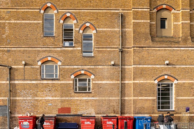 For something more traditional, there is some attractive brickwork and a stagger of arched windows at the side of the mainline station. It’s also worth a look at the bright colours of the small businesses under the arches here, most of which are run by the local Latin American community.